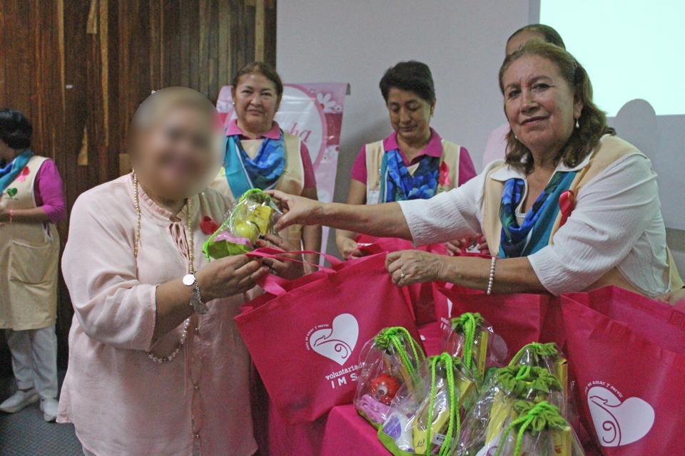 Xalapa, Ver.- En el marco del Mes de Sensibilización sobre el Cáncer de Mama, el Voluntariado del Instituto Mexicano del Seguro Social (IMSS) en Veracruz Norte llevó a cabo la entrega de prótesis de mama artesanales para mujeres mastectomizadas.