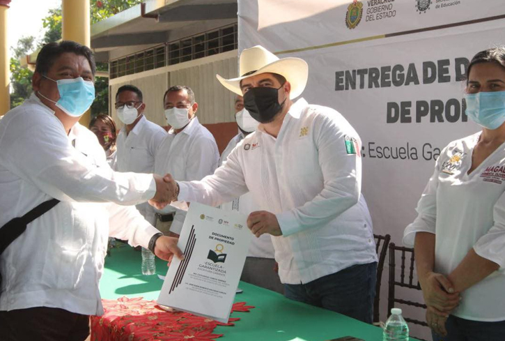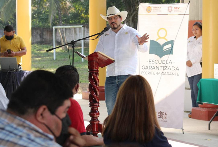 Jaltipan, Ver.- A través del programa “Escuela Garantizada, Escritura Garante”, el secretario de Educación de Veracruz (SEV), Zenyazen Escobar García, entregó 41 documentos de propiedad a escuelas del nivel básico y supervisiones escolares de zona de los municipios de: Isla, Jáltipan, Sayula de Alemán y Zaragoza.
