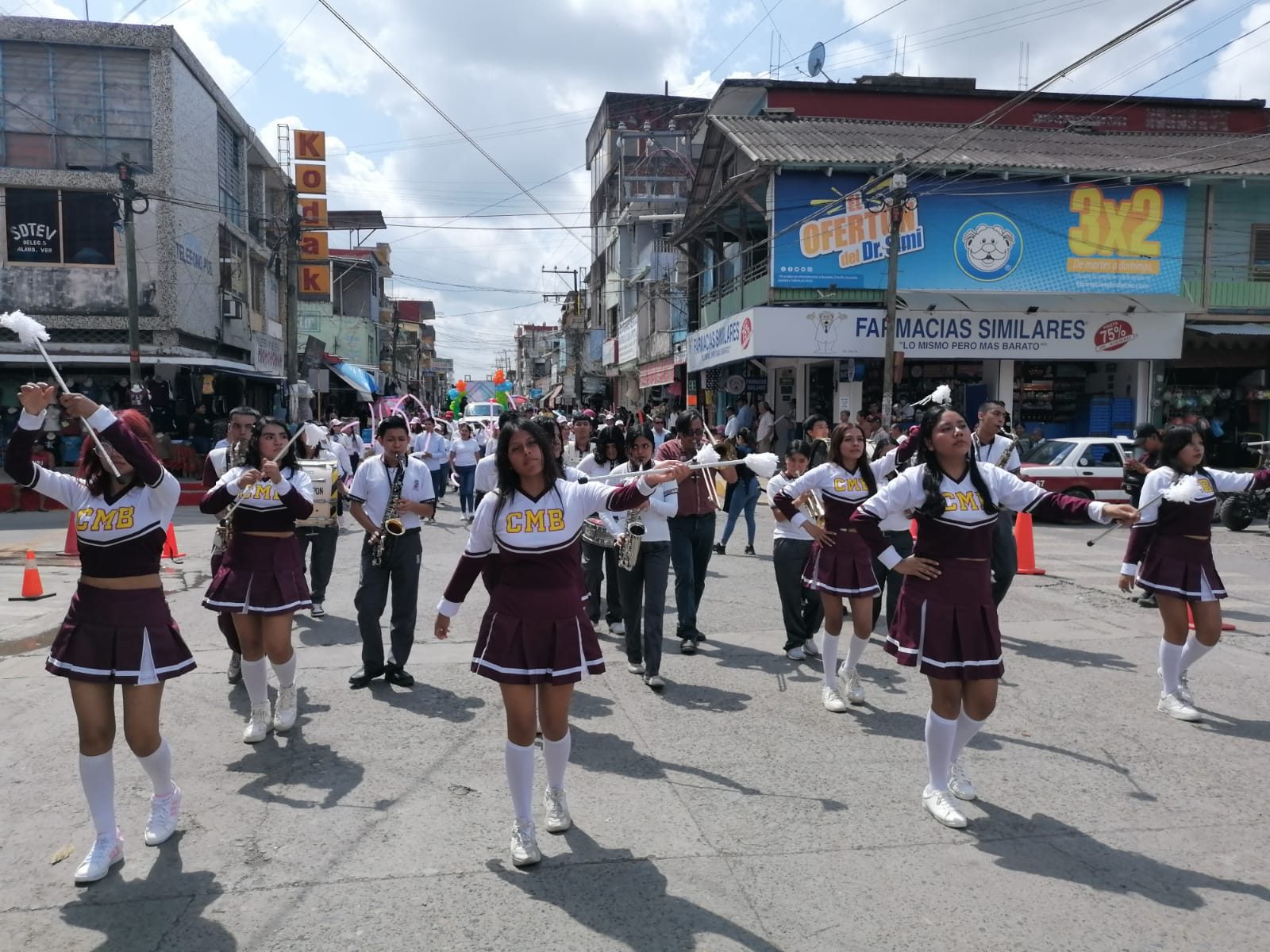 En la vistosa parada infantil también destacó la participación de la banda de guerra y las bastoneras del Colegio de Bachilleres del Estado de Veracruz (COBAEV 05), quienes dieron verdadero realce al recorrido.