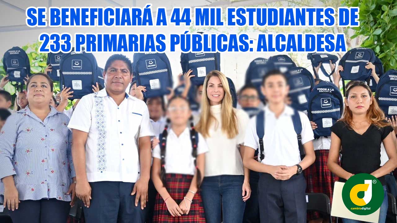 La munícipe informó que a través de este Programa de Apoyo Escolar Municipal se beneficiará a 44 mil estudiantes de 233 escuelas primarias públicas de Veracruz, lo que significa que el 100% de los niños de nivel primaria van a tener su kits escolar.