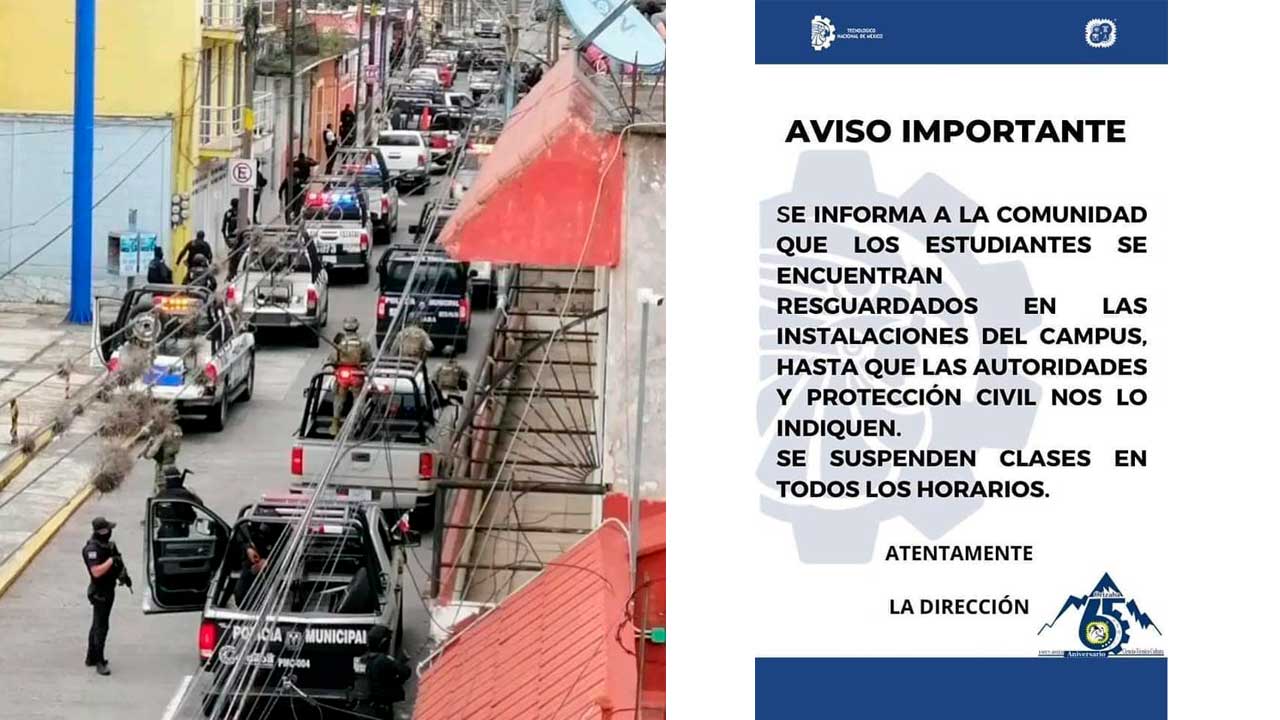 El Instituto Tecnológico de Orizaba decidió suspender clases, pues los más de mil estudiantes, se vieron expuestos a varias horas de pánico por los enfrentamientos.