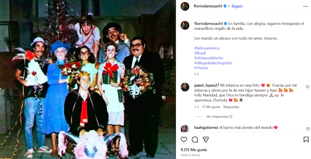 En medio de la controversia, Florinda Meza sorprendió a sus seguidores al compartir una fotografía navideña del elenco de El Chavo del 8, acompañada de un mensaje conciliador: “En familia, con alegría, sigamos festejando el maravilloso regalo de la vida. Les mando un abrazo con todo mi amor”.
