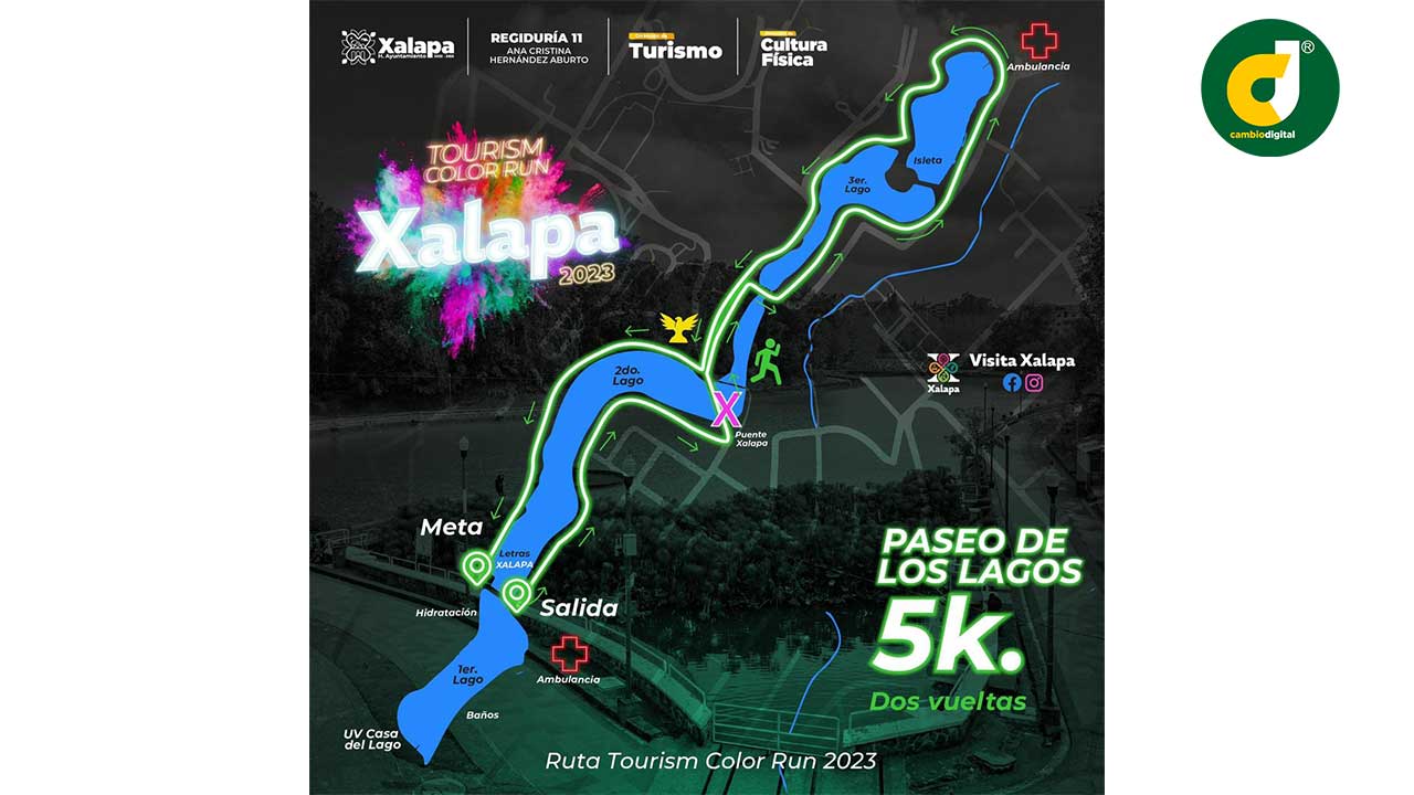 Xalapa, Ver.- Para el seguro y adecuado desarrollo de la Carrera Tourism Color Run 2023, este día, a partir de las 18:30 y hasta las 19:30 horas, las calles Venustiano Carranza, 13 de Septiembre y el Circuito Universitario Gonzalo Aguirre Beltrán, en la zona de El Dique, permanecerán cerradas al tránsito vehicular.
