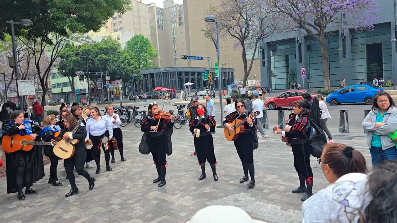 Como parte del evento “Callejones del Centro Histórico: Entre ecuaciones y acordes”, estudiantes de la Facultad de Ingeniería y de la Facultad de Ciencias Políticas y Sociales, de la Universidad Nacional Autónoma de México, así como de la Escuela Superior de Cómputo, del Instituto Politécnico Nacional, y de la Facultad de Geografía, de la Universidad Autónoma del Estado de México, se turnaron para tocar para la gente mientras caminaban por la Alameda Central.