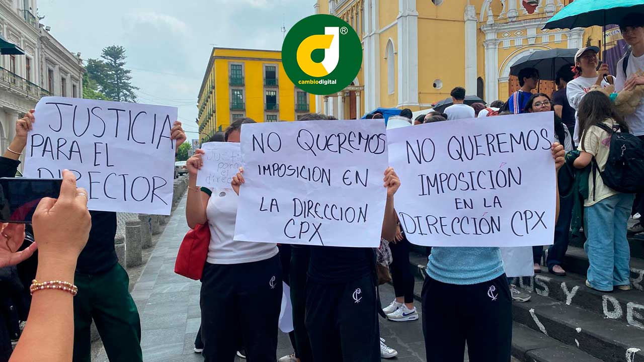 Xalapa, Ver.- Estudiantes y personal del turno matutino del Colegio Preparatorio de Xalapa protestaron este martes en plaza Lerdo para exigir que se respete la reelección del director, Luis Manuel García Morales, quien esta mañana fue destituido de su cargo de manera sorpresiva, pese a haber sido reelecto para un segundo periodo de cuatro años.