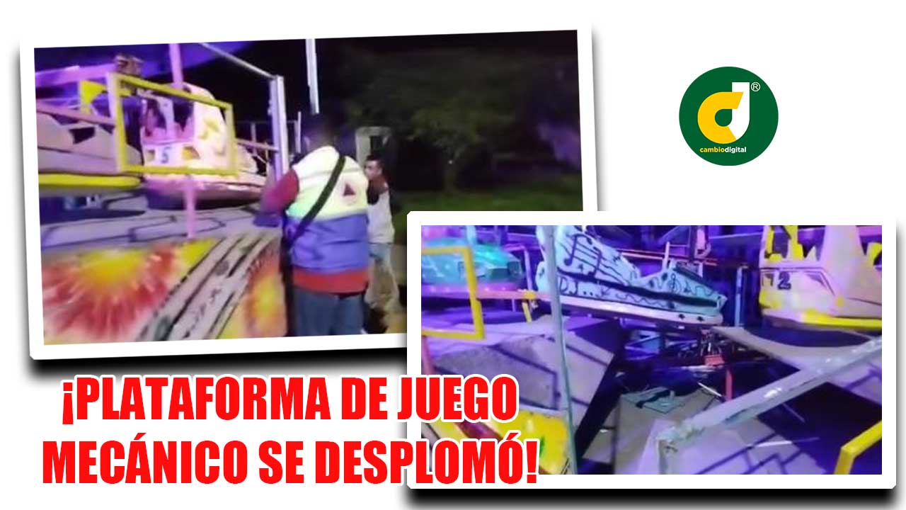 El piso o plataforma de parte del juego mecánico cayó y uno de los carritos salió disparado con sus ocupantes, entre ellos menores de edad.