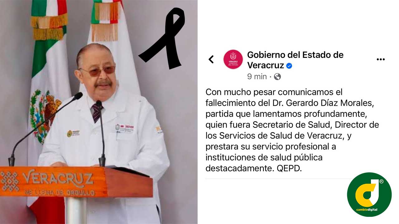Xalapa, Ver.- El gobierno del estado de Veracruz en redes sociales publicó lo siguiente: Con mucho pesar comunicamos el fallecimiento del Dr. Gerardo Díaz Morales, partida que lamentamos profundamente, quien fuera secretario de Salud, director de los Servicios de Salud de Veracruz, y prestara su servicio profesional a instituciones de salud pública destacadamente.