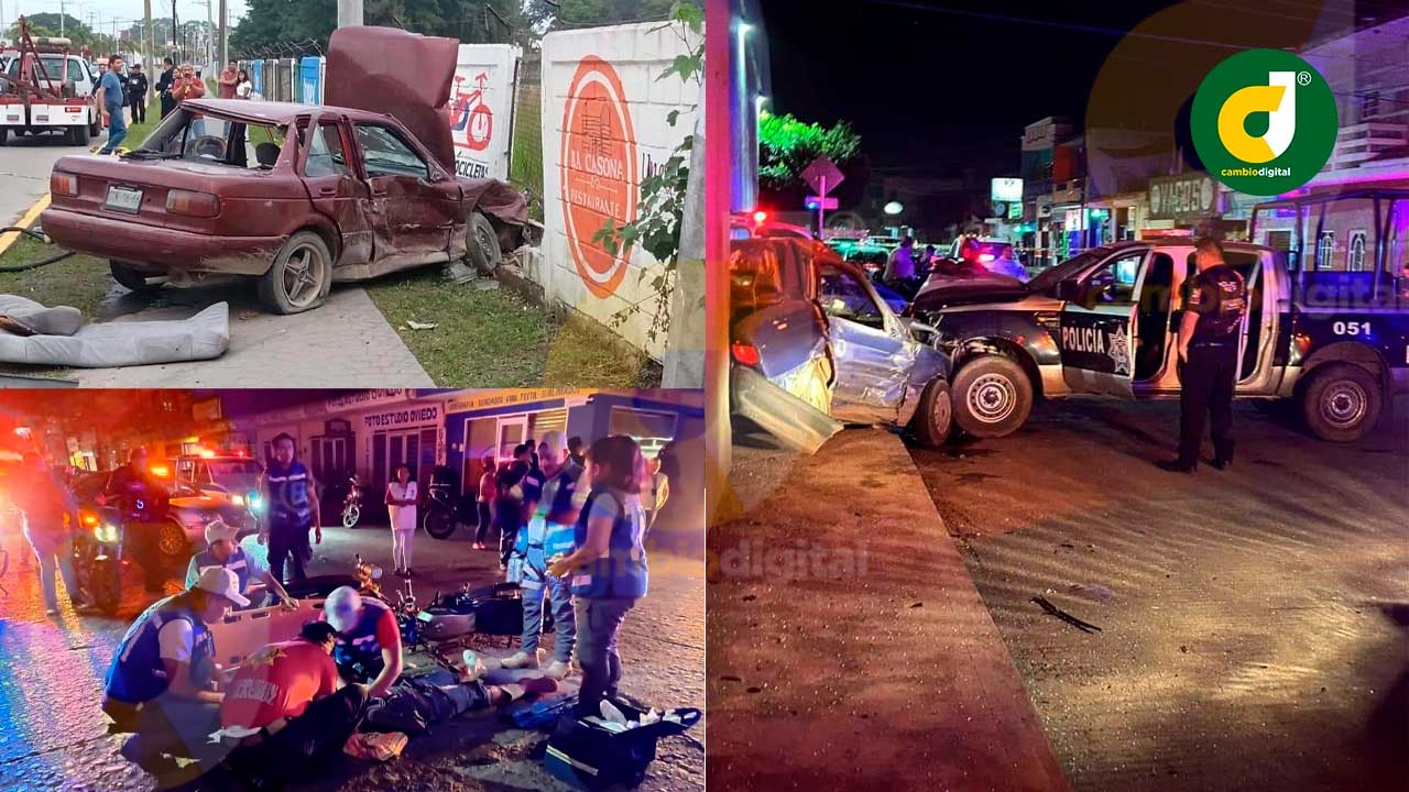 Con saldo en elevados daños materiales, además de dos policías lesionados y el conductor del automóvil quien presuntamente viajaba en estado de ebriedad.
