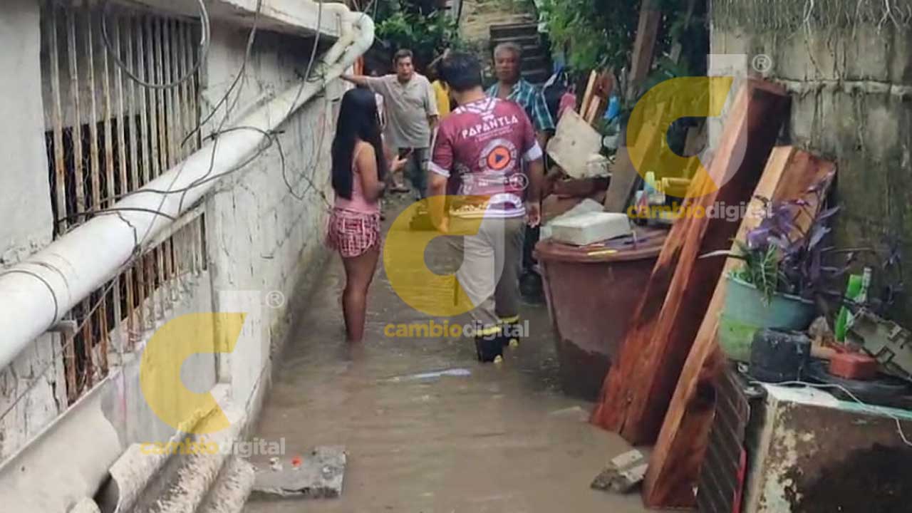 Se registraron afectaciones en la calle Xalapa, tras las lluvias registradas este jueves 24 de agosto varias personas quedaron atrapadas debido a que el nivel del agua subió alrededor de un metro, imposibilitando la salida de sus hogares.