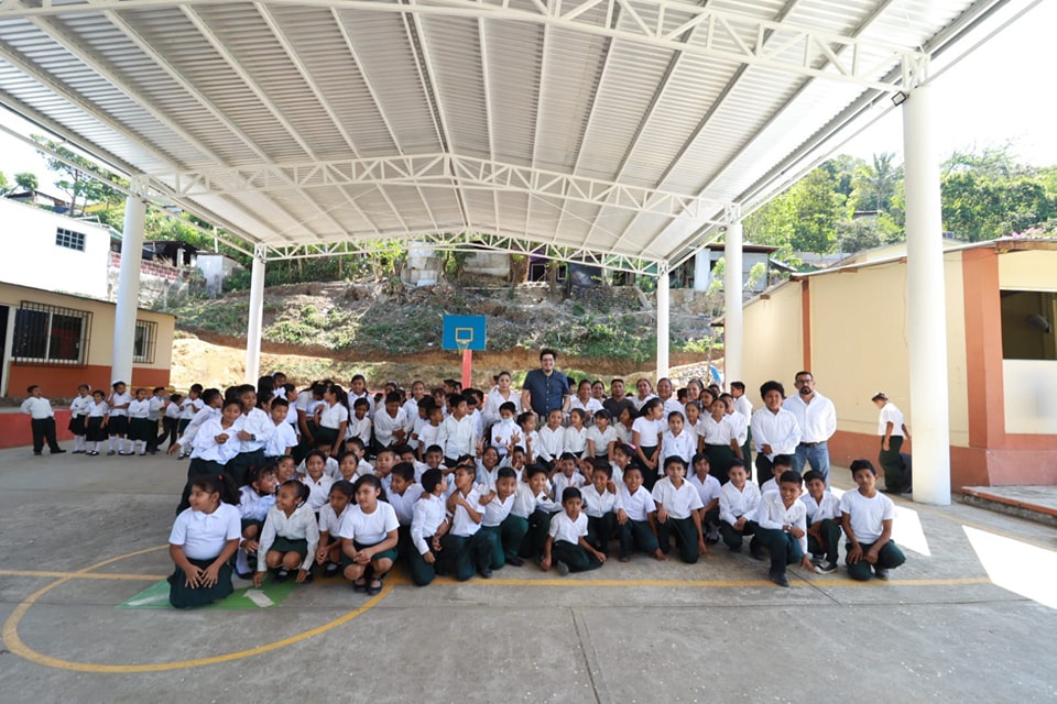 San Andrés Tuxtla, Ver.- Supervisando la conclusión de la obra de domo en la plaza cívica de la escuela primaria “Ignacio Zaragoza” de la comunidad de Texcaltitán, el presidente del DIF Municipal de San Andrés Tuxtla, el ingeniero Felipe Rubio Solana, aprovechó para hacer la donación de una banca de metal y un equipo de impresión en beneficio de la población escolar de esta institución.