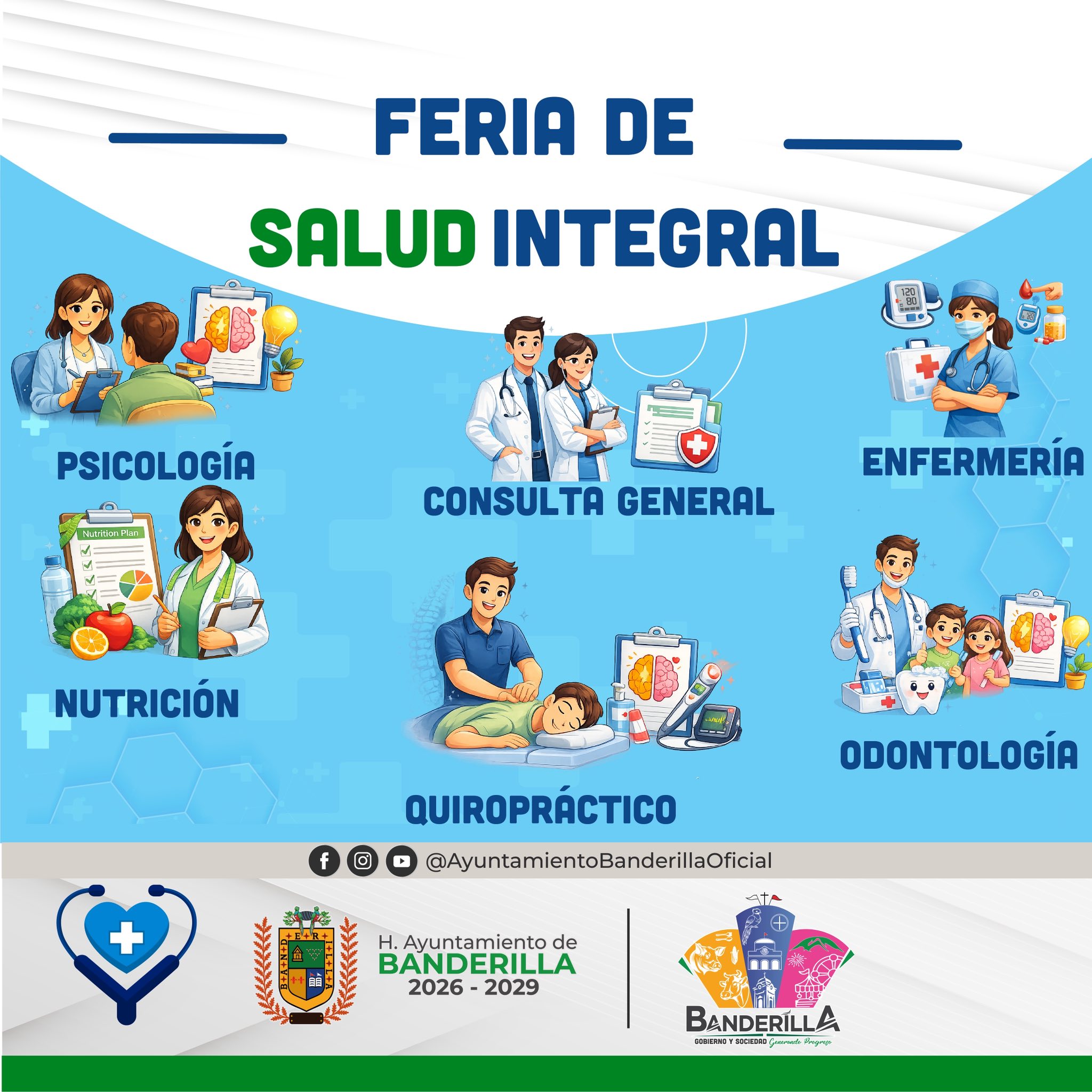Banderilla, Ver.- El H. Ayuntamiento de Banderilla que preside José Antonio Sangabriel Fernández, a través del Dispensario Médico de Banderilla, te invita a participar en la Feria de Salud Integral, un espacio dedicado al bienestar, la prevención y el cuidado de tu salud y la de tu familia.