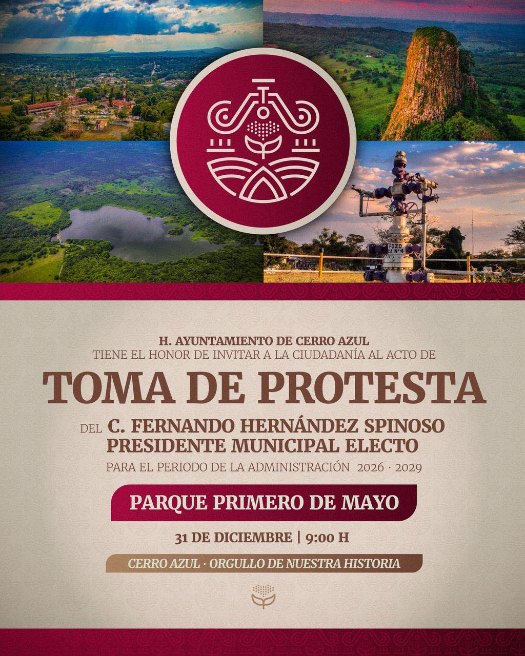 “Será un honor contar con la presencia de mis amigos y amigas de nuestras comunidades, colonias y del pueblo en general. Asumiré este cargo con entrega, orgullo y mucho sentido de responsabilidad”, destacó Hernández Spinoso.