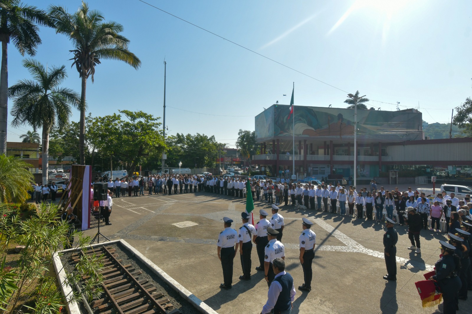 Después de los discursos oficiales, el alcalde Fernando Remes Garza encabezó la entrega de ofrenda floral y guardia de honor, acompañado de ediles, el Secretario General del Sindicato de Trabajadores Petroleros de la República Mexicana (STPRM) de la Sección 30, José Juan Soni Solis; el Presidente del Frente de Resistencia y Unidad Sindical (FRUS), Sergio Lorenzo Quiroz Cruz; el responsable de la Gran Logia Simbólica Alfa y Omega No. 9, Mtro. Esteban Soto Solían, y el Representante de la Gran Logia Unida Mexicana de Veracruz, Roberto Santos Aquino.