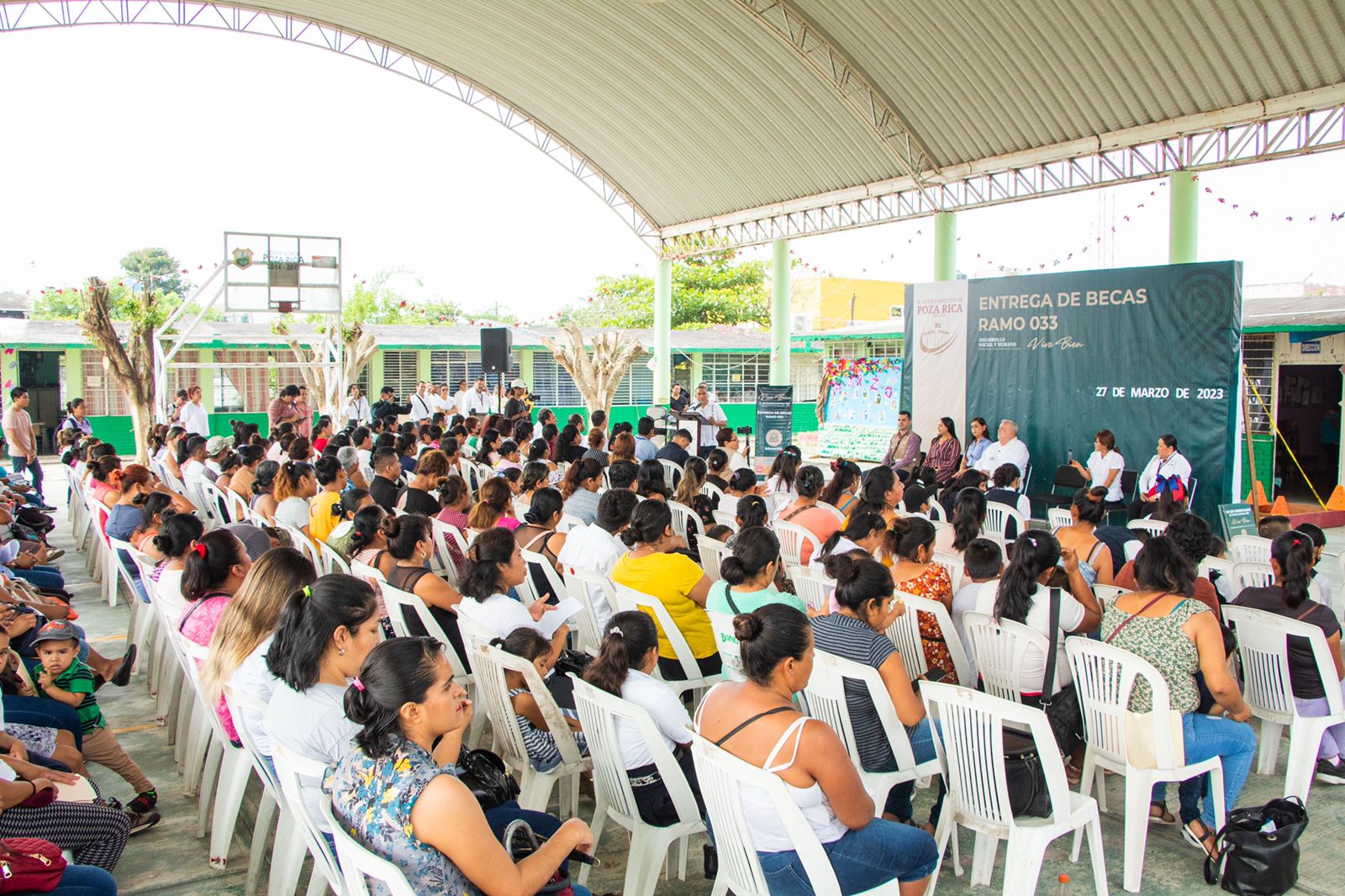 Desde la sede en la escuela primaria Josefa Ortíz de Domínguez, el edil reiteró su compromiso con la educación de niñas, niños y adolescentes, quienes representan el futuro de Poza Rica, con la entrega de estos estímulos económicos para combatir la deserción escolar a nivel primaria y secundaria.