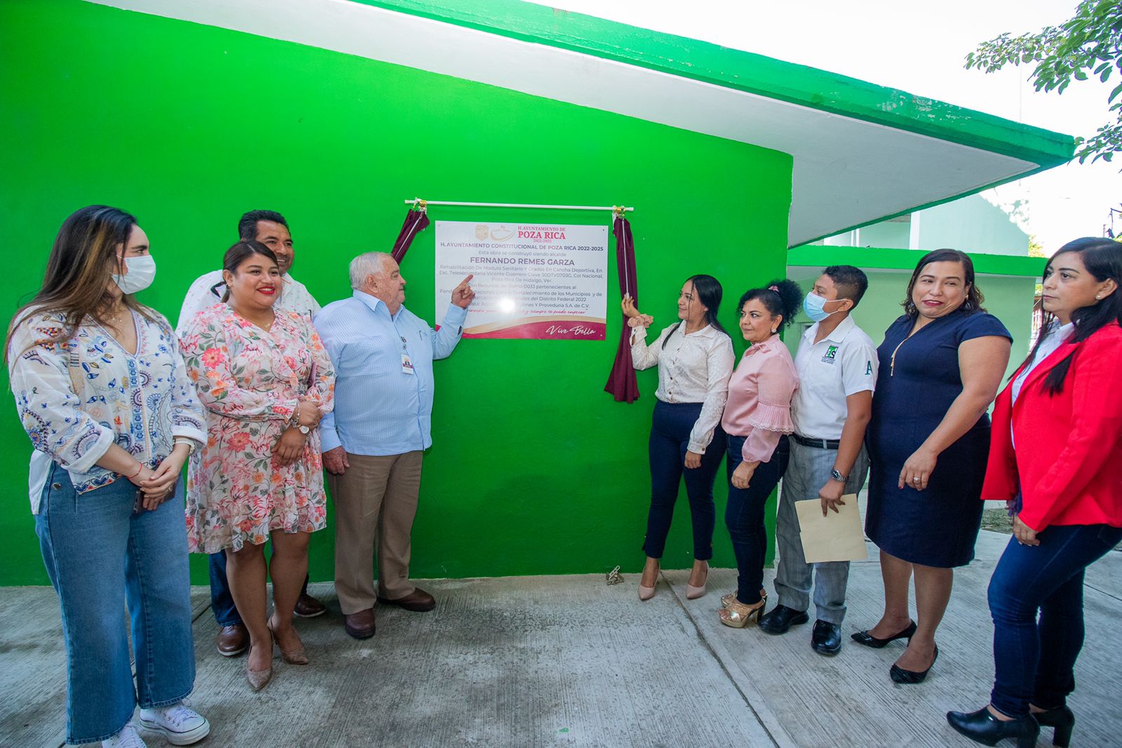 Poza Rica, Ver. – “La educación no tiene precio, ahí radica el futuro del país, por eso la actual administración trabaja decididamente en apoyar los esfuerzos de la ciudadanía para mejorar su calidad de vida”, dijo el alcalde Fernando Remes Garza, durante una entrega de obra en la escuela Telesecundaria “Vicente Guerrero” de la Colonia Nacional, que beneficia a los alumnos con la rehabilitación del módulo sanitario y las gradas de la cancha deportiva.