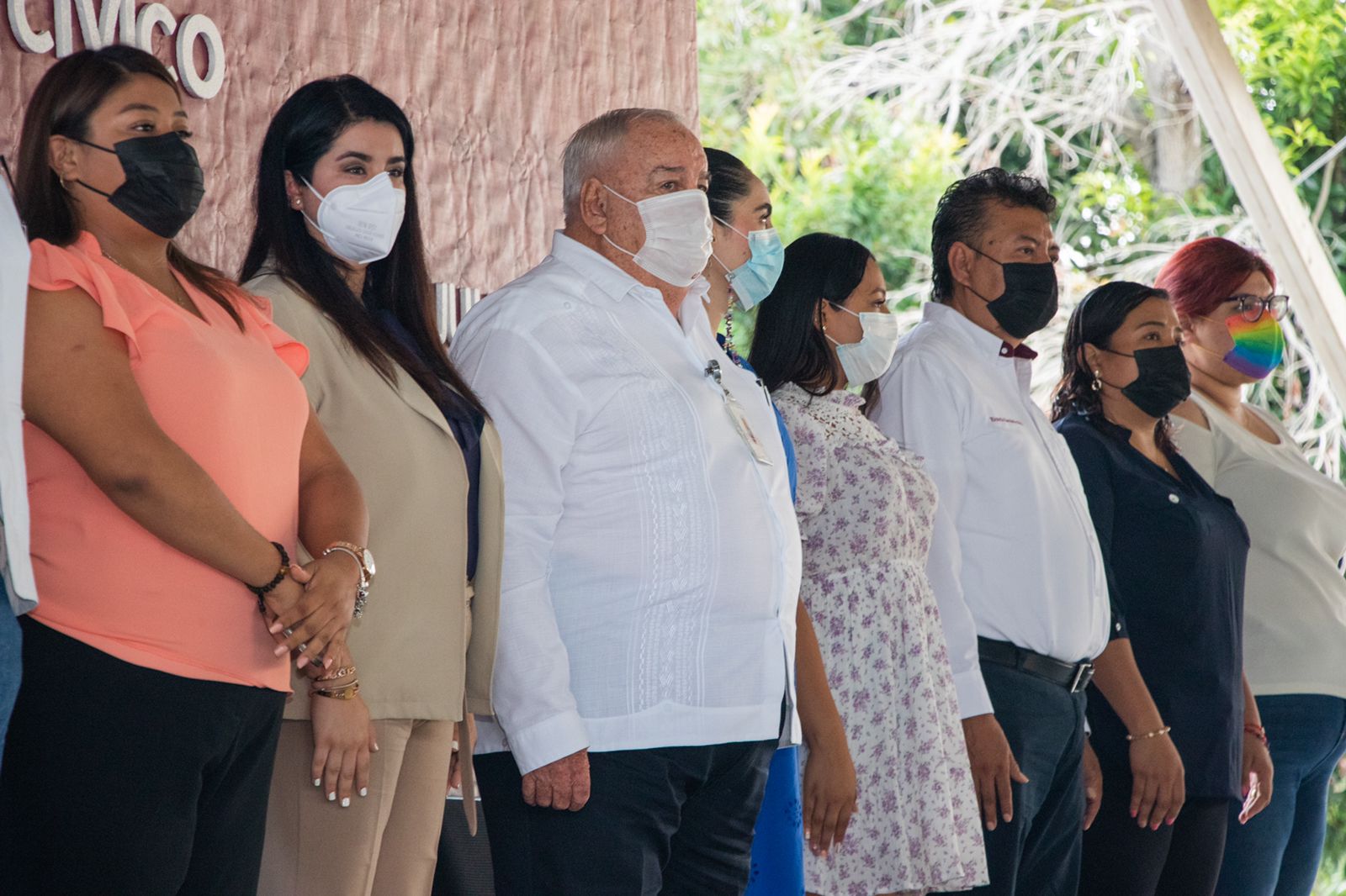 * Encabeza el acto cívico en la escuela Primaria Art. 123 Ing. José Colomo Corral