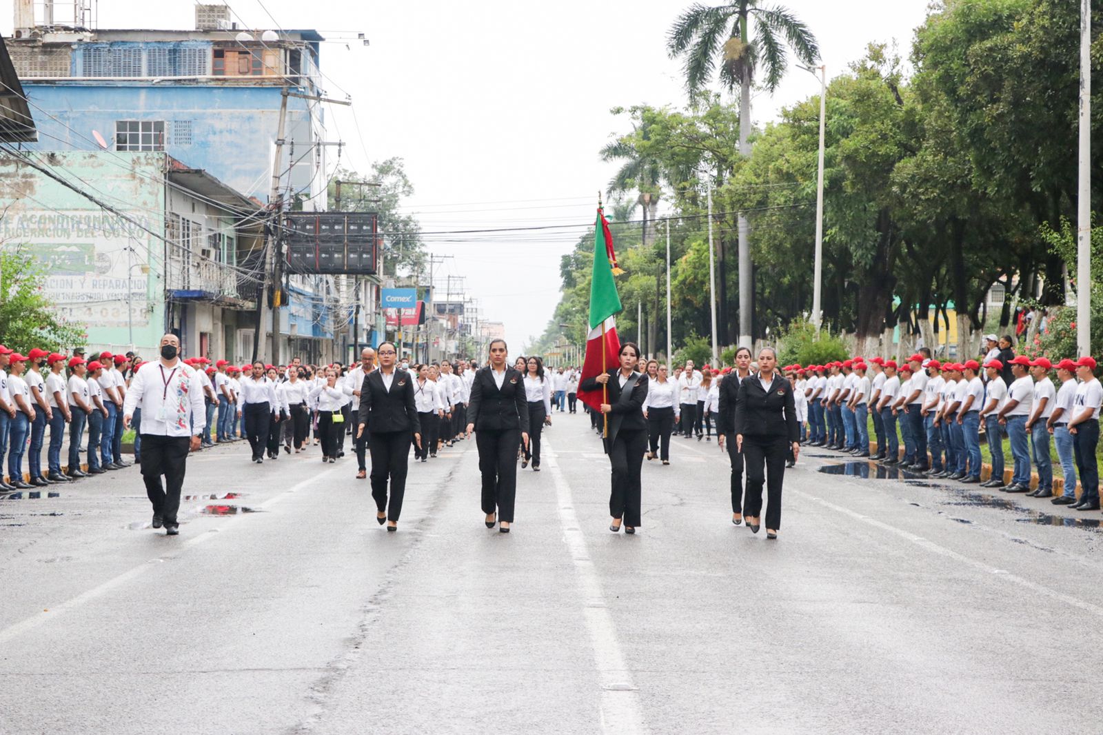 Desde la tribuna de honor, el alcalde Fernando Remes Garza, acompañado de ediles, la representante del Gobierno del Estado de Veracruz, y el Coronel de Infantería Diplomado en Estado Mayor, Vicente Dimayuga Canales, encabezaron el evento y fortalecieron sus lazos durante la conmemoración de esta histórica fecha.