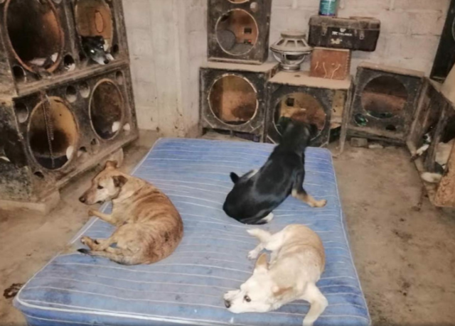 Para ello han sacrificado tres cuartos de su terreno, para crear cuartos donde estén los perros, por lo que las bocinas que ya no usa Fito las acondicionó como casitas para los perros.
