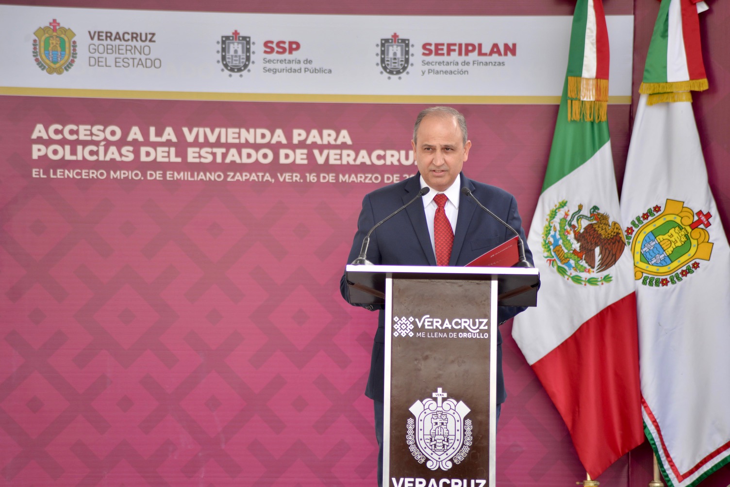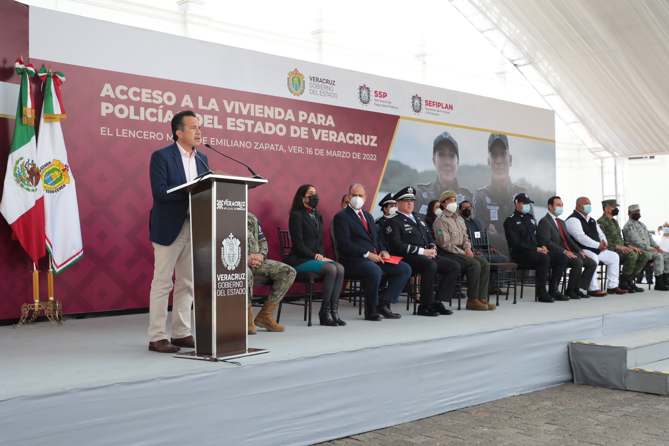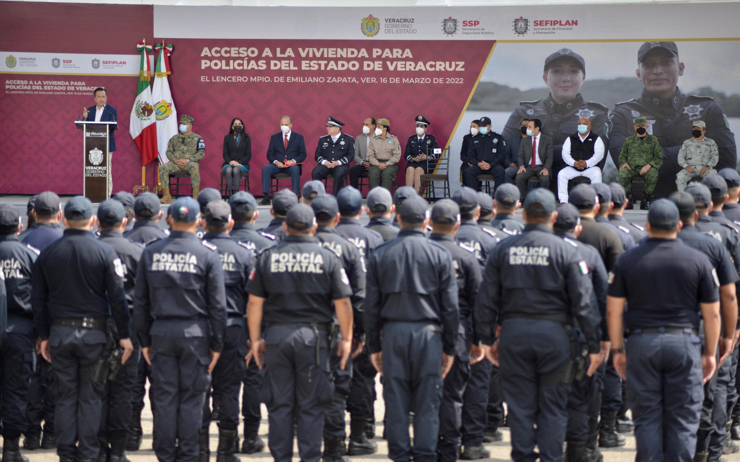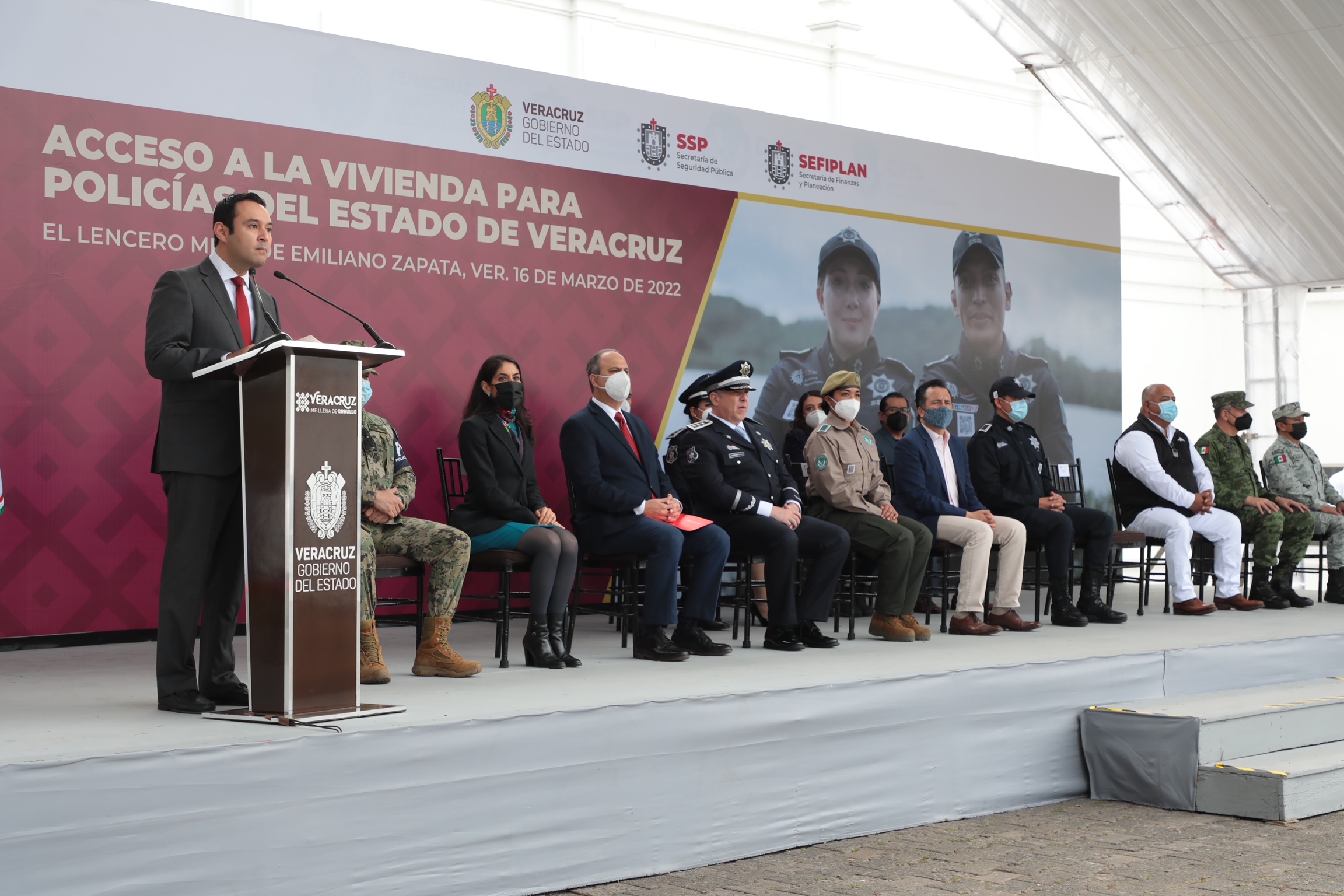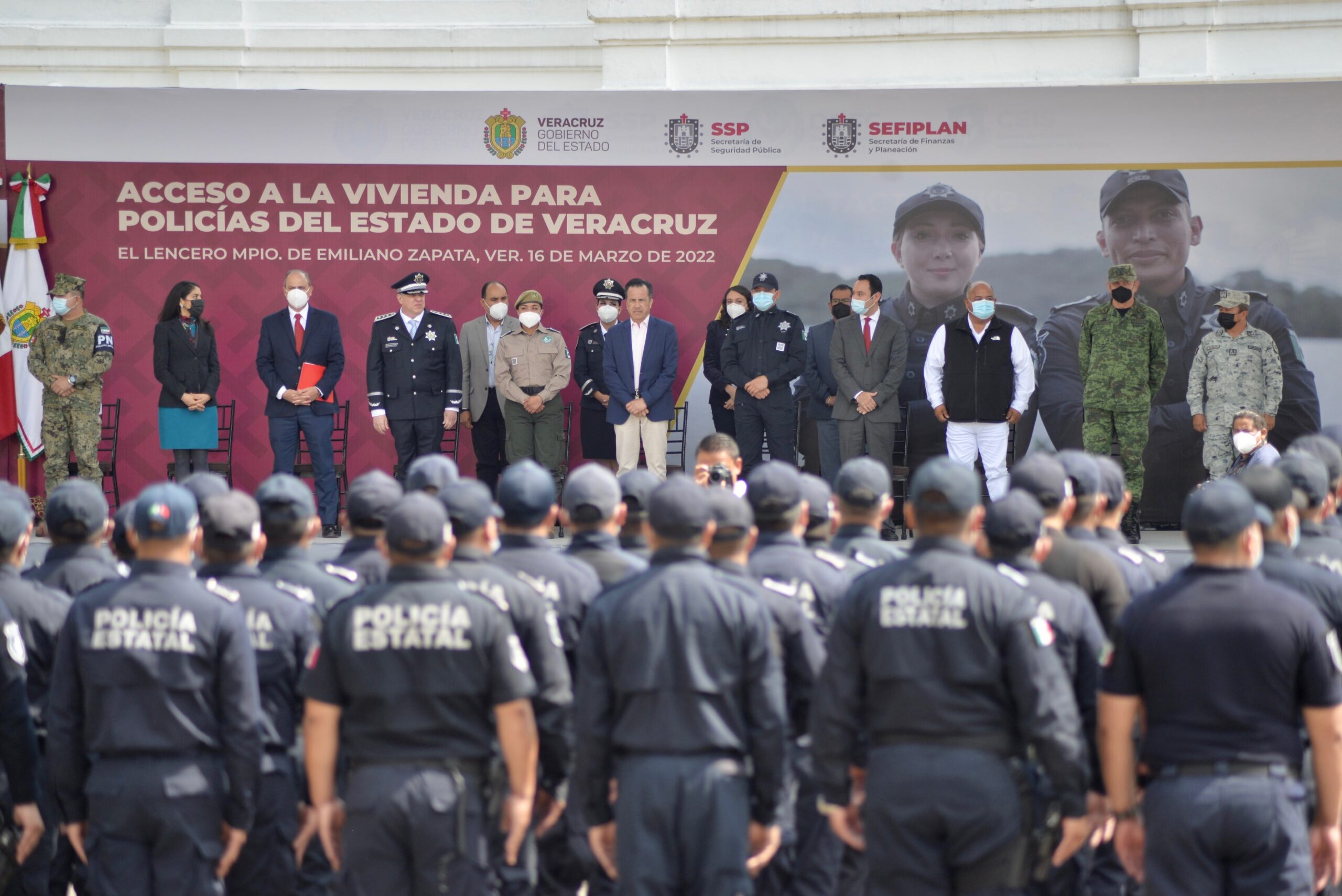 Xalapa, Ver.- Veracruz vuelve a ser ejemplo nacional al acercar un esquema de créditos para vivienda a la Policía Estatal, "un paso más en la visión de garantizar mejores condiciones de trabajo a quienes arriesgan su vida por los demás, gracias a la confianza de la banca en esta administración", expresó el gobernador Cuitláhuac García Jiménez.