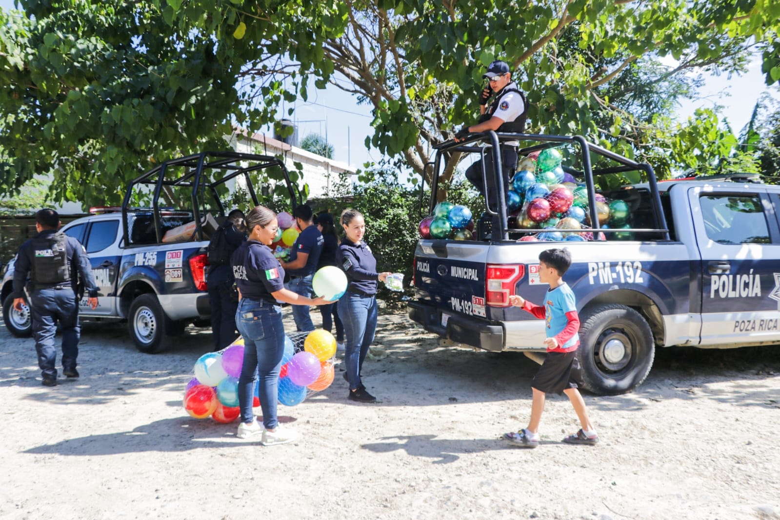 Poza Rica, Ver. – Por instrucciones del alcalde Fernando Remes Garza, elementos de la Policía Municipal fortalecieron la proximidad social con la ciudadanía a través de pláticas informativas y entregando sonrisas a la niñez pozarricense que habita en sectores vulnerables.