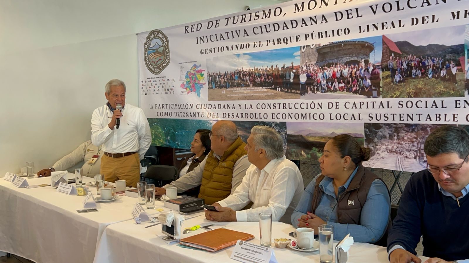 La ceremonia reunió a diversas personalidades, entre ellas Alfonso Efraín Marín Delfín, presidente municipal de Fortín; Fernando Molina Herbert, director del Centro INAH Veracruz; Emilio Zilli Debernardi, coordinador general de la iniciativa ciudadana Del Volcán al Mar; Sandra Raquel Xotlanihua González, síndica única del municipio de Ixtaczoquitlán; Nemesio Leonardo Sánchez Mendoza, presidente electo de la Red de Turismo Montaña, Sol y Niebla para el periodo 2026–2028; y Carlos Rojas Ake, encargado del Área Natural Protegida del Metlác-Cañón del Río Blanco, Saúl Castilla Moyado, director de la Facultad de Arquitectura de la Universidad Veracruzana; entre otros quienes forman parte de los esfuerzos coordinados para impulsar el desarrollo turístico sustentable en la región.