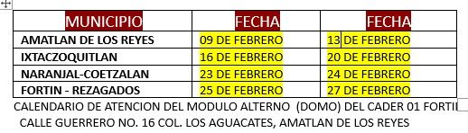 Para mayor comodidad de los productores locales, se ha establecido un periodo específico de atención para rezagados en la ventanilla del Módulo Alterno (Domo) del CADER 01 Fortín, ubicado en la Calle Guerrero No. 16, Col. Los Aguacates, en Amatlán de los Reyes:
