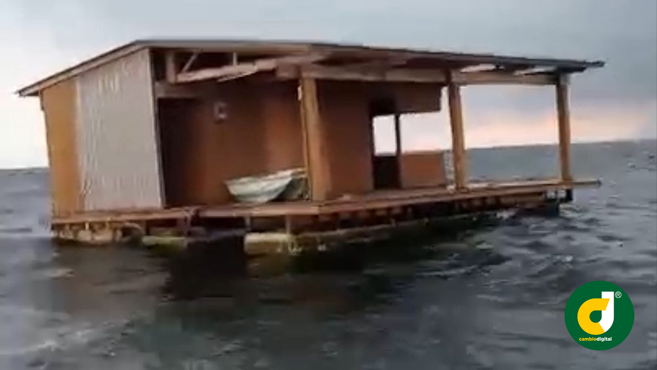 Elementos de la Estación Naval de Búsqueda, Rescate y Vigilancia Marítima (ENSAR) acudieron al lugar y lograron asegurar tanto la estructura tipo cabaña como una pequeña embarcación anexa, para posteriormente remolcarlas de regreso a tierra firme.