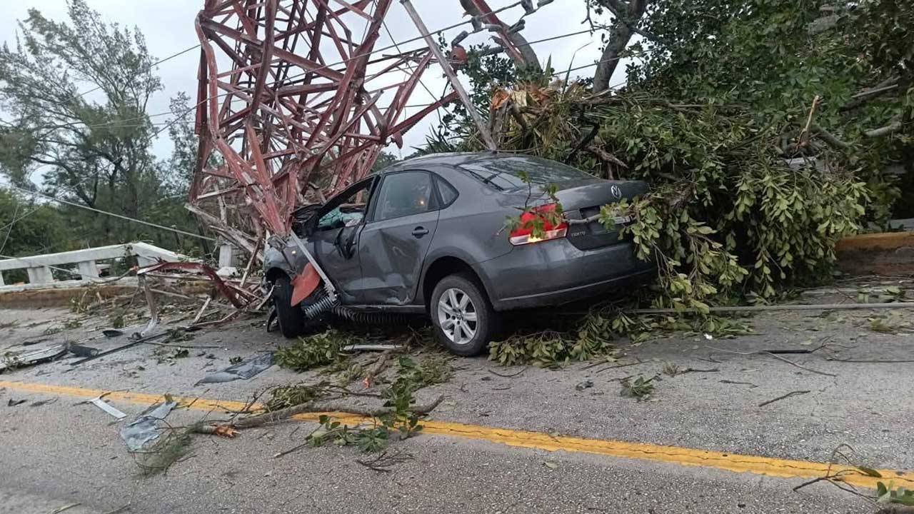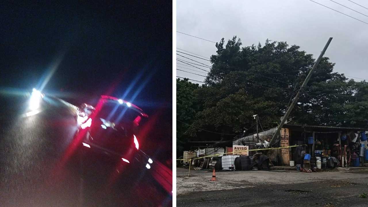 En tanto en la zona sur de la entidad cayó una torre de electricidad sobre un autobús de pasajeros.