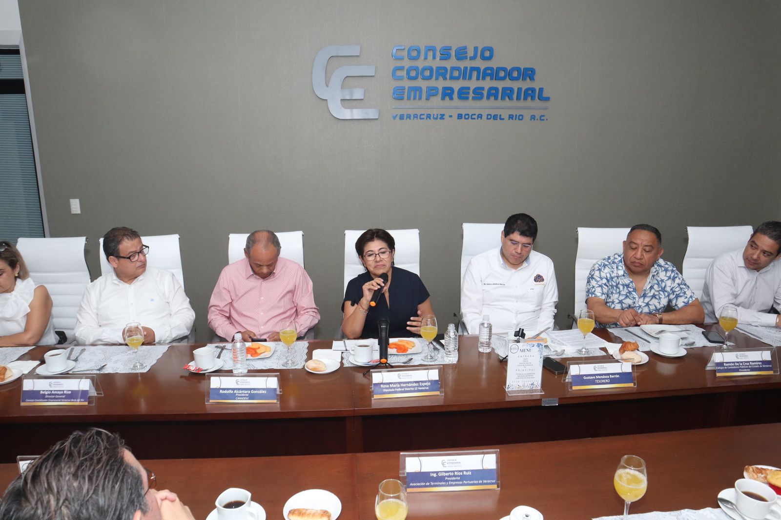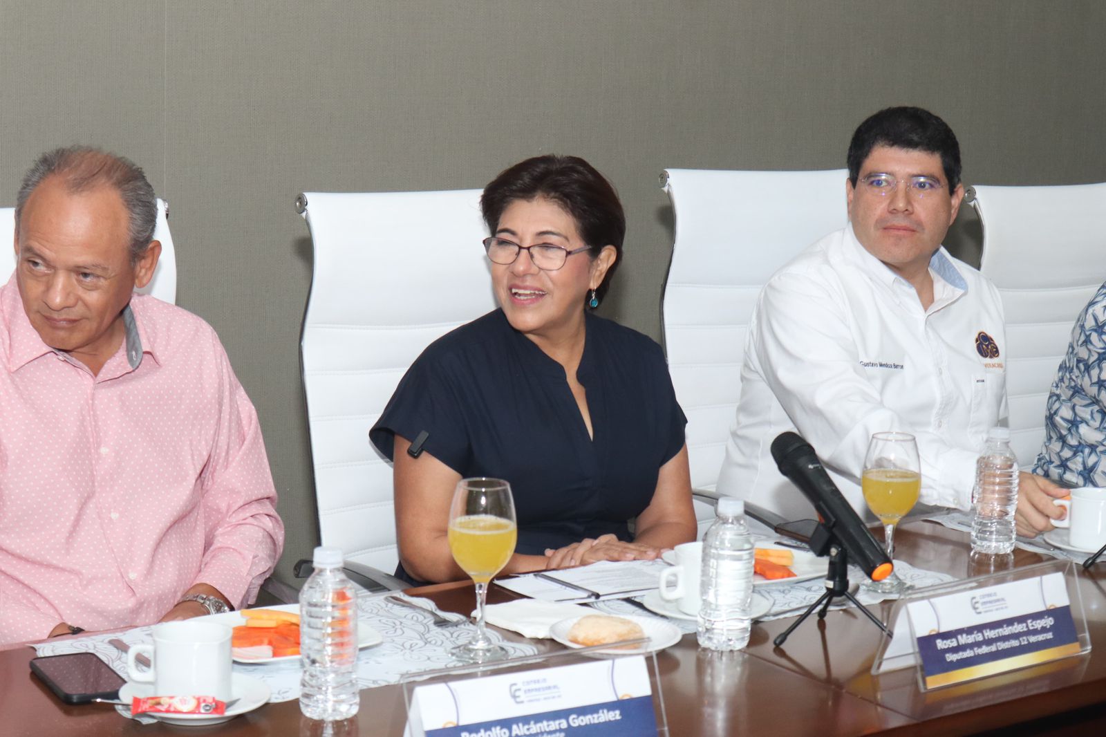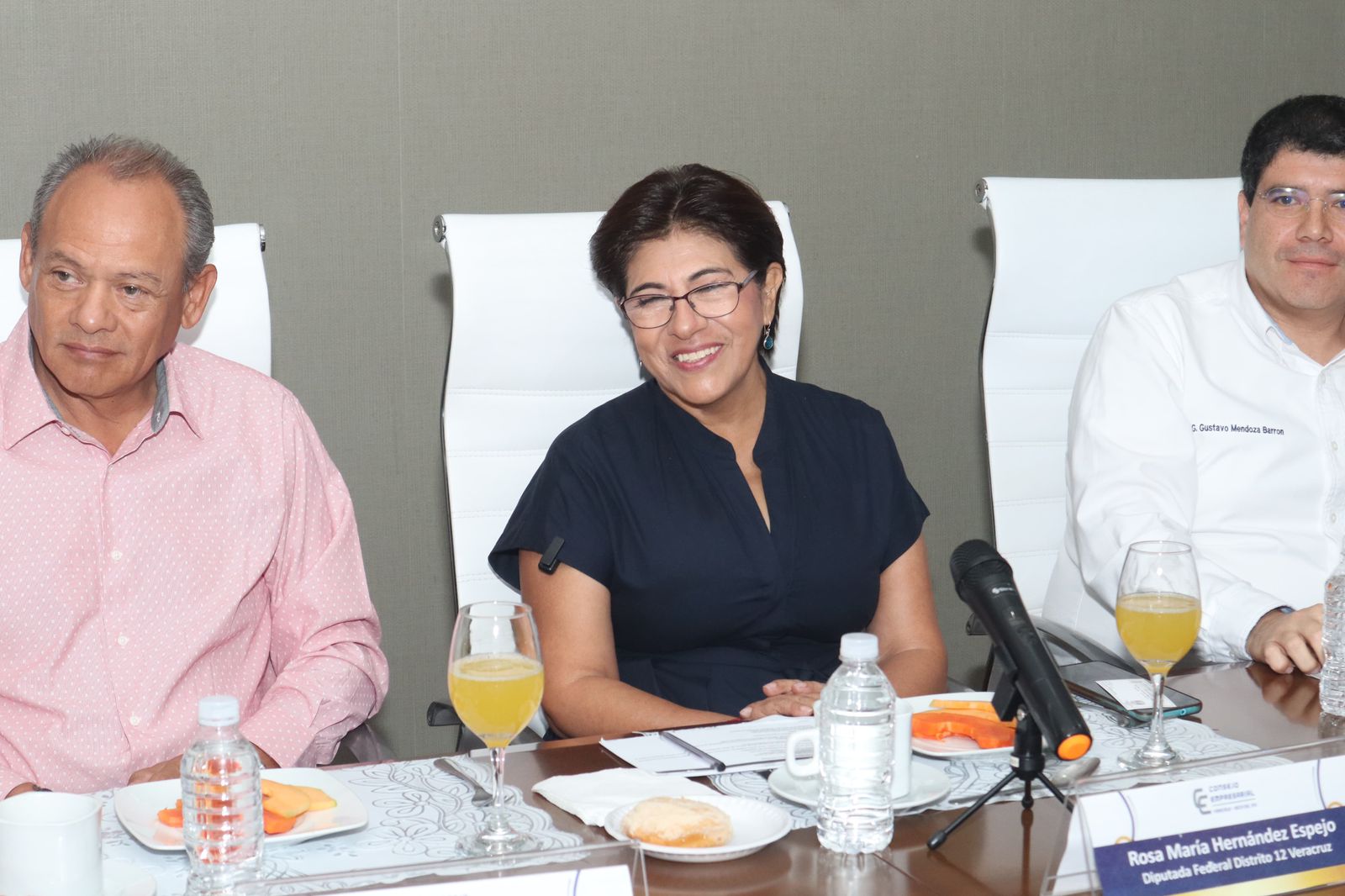 Veracruz, Ver.- Un diálogo franco y abierto se dio este lunes durante el encuentro que sostuvo la diputada federal Rosa María Hernández Espejo con la cúpula del Consejo Coordinador Empresarial de la conurbación Veracruz-Boca del Río, en donde la legisladora destacó el interés perenne de Claudia Sheinbaum Pardo y de Rocío Nahle García por impulsar políticas públicas que permitan la construcción del segundo piso de la Cuarta Transformación.