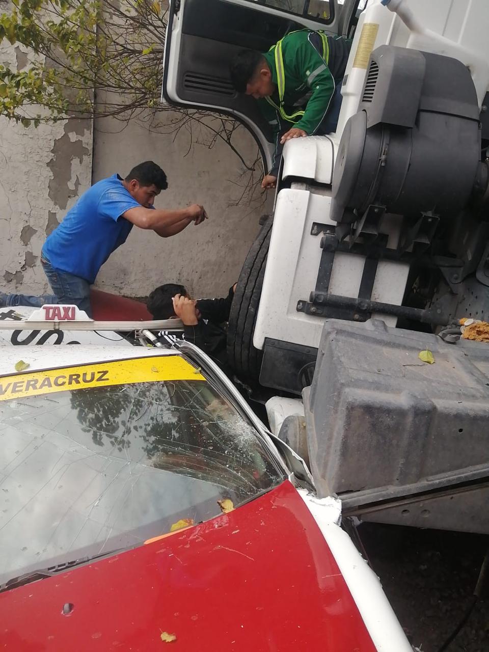 Veracruz, Ver.- La imprudencia del conductor de una camioneta al dar vuelta en U sobre la carretera federal Veracruz-Xalapa, provocó un accidente múltiple en el que se vieron involucrados cinco vehículos, tres de ellos taxis y un tractocamión cargado de cervezas; cuatro personas resultaron lesionadas, dos de ellas de gravedad.