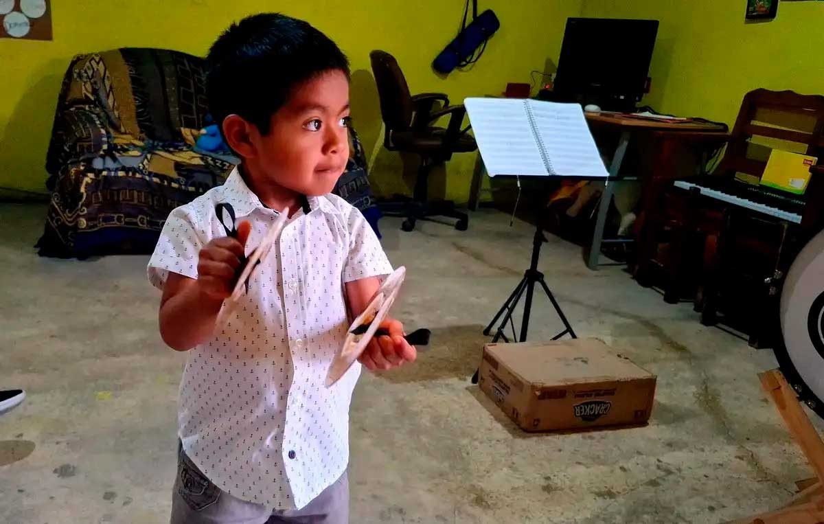 Ser músico, desde que hace tiempo, es el deseo de este pequeño quien recientemente se “hizo viral” en Puebla por la manera arrojada, sincera y completa en la que siente la música: Lo mismo interpretando su nuevo acordeón de juguete que una flauta de plástico o la tambora que le asemeja en tamaño y hace vibrar en cada oportunidad.
