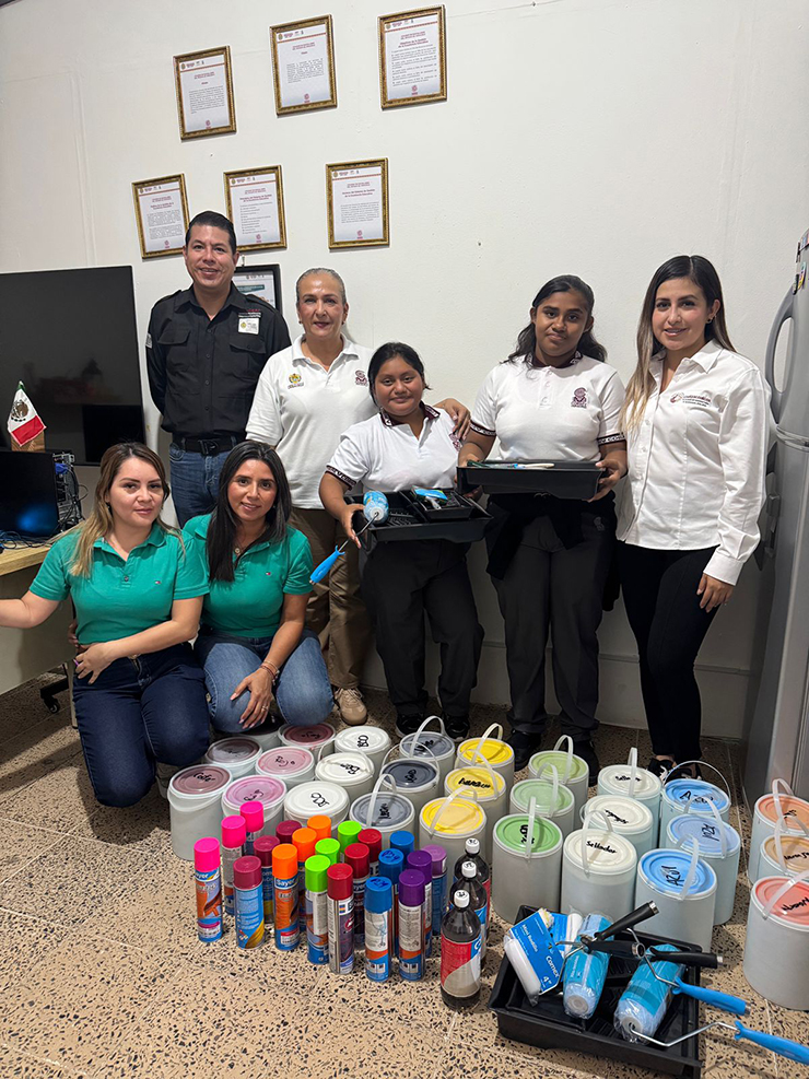Coatzacoalcos, Ver., 30 de octubre de 2025.- Los estudiantes del Colegio de Bachilleres del Estado de Veracruz (COBAEV) 18 de Coatzacoalcos, ganadores del concurso "Murales por la Paz 2025", recibieron los materiales necesarios para plasmar sus obras dentro de las instalaciones de su plantel.