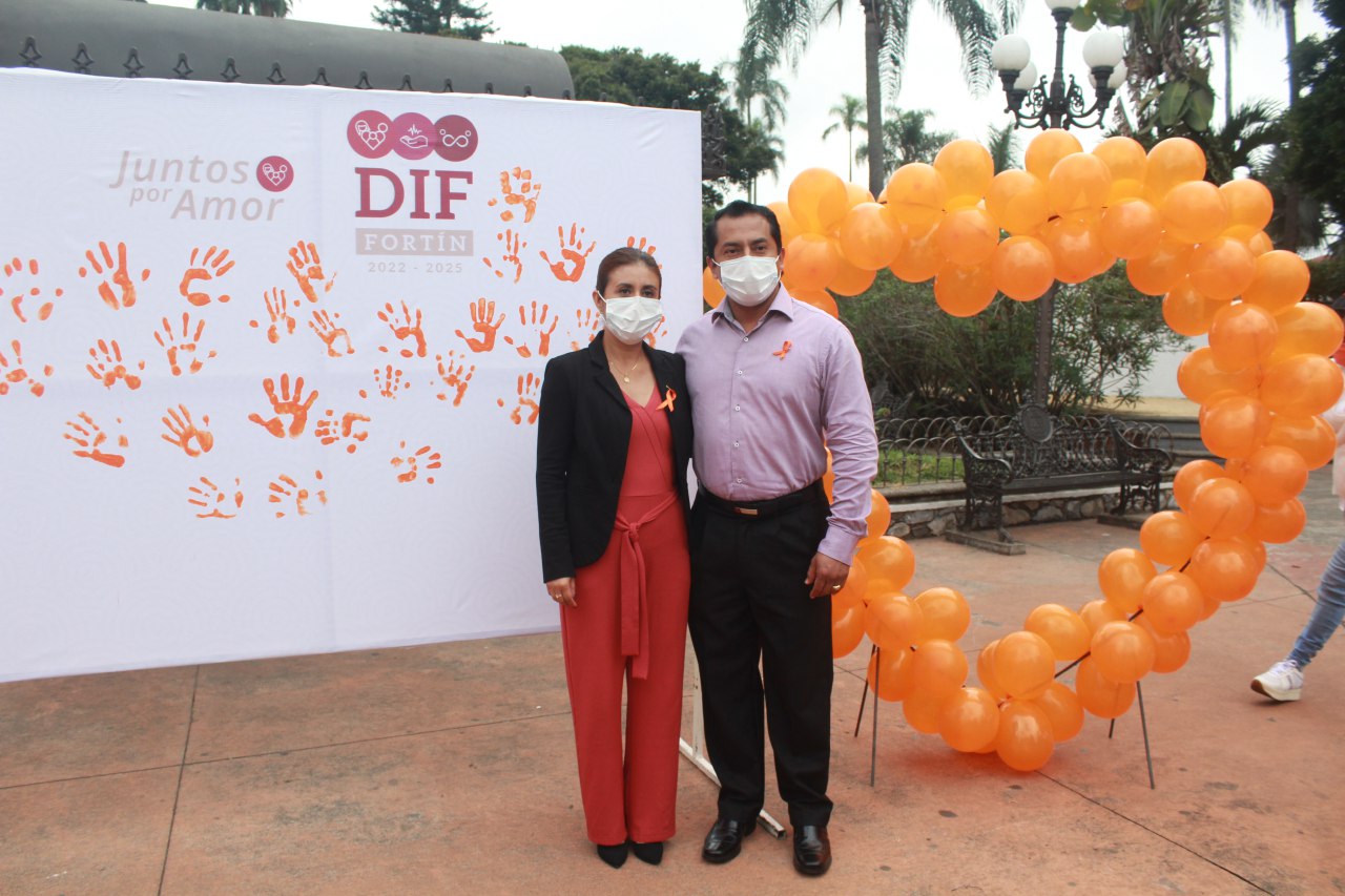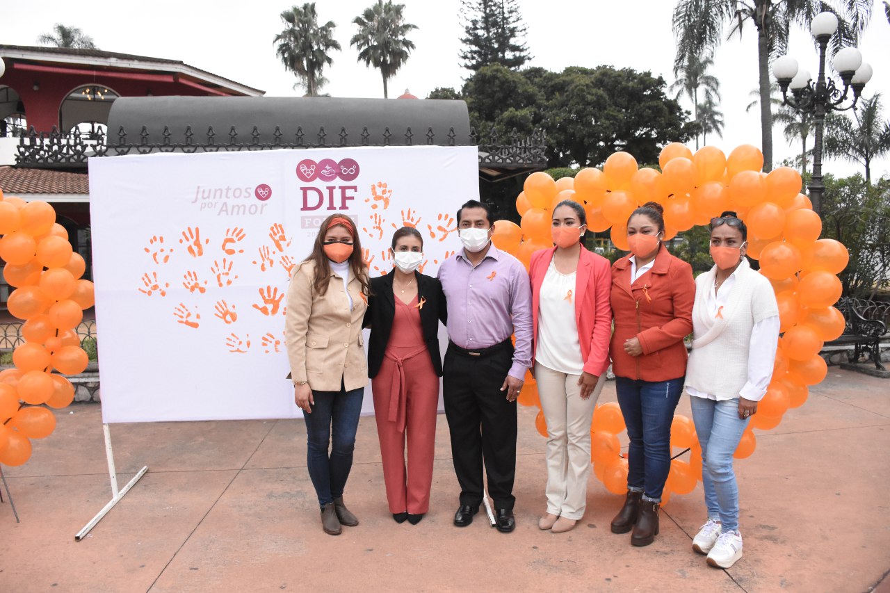 Fortín, Ver.-"Quiero reconocer y admirar el papel de la mujer en la sociedad, principalmente en nuestra sociedad fortinense", dijo la señora Olga Juárez Rodríguez, presidenta del DIF municipal en el marco del Día Naranja donde de manera simbólica acompañada de su esposo el presidente municipal Gerardo Rosales Victoria y la de la directora del Instituto de la Mujer, Míriam Arely Toledano Moreno, plasmaron en pintura naranja la palma de su mano, recordando que la mujer no debe ser violentada.