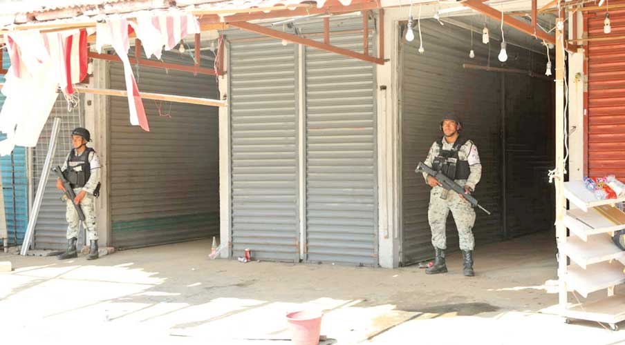 Los guardias nacionales establecen dispositivos de seguridad y vigilancia en las inmediaciones de plazas comerciales y mercados públicos.
