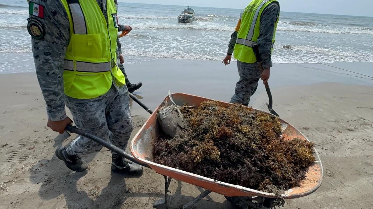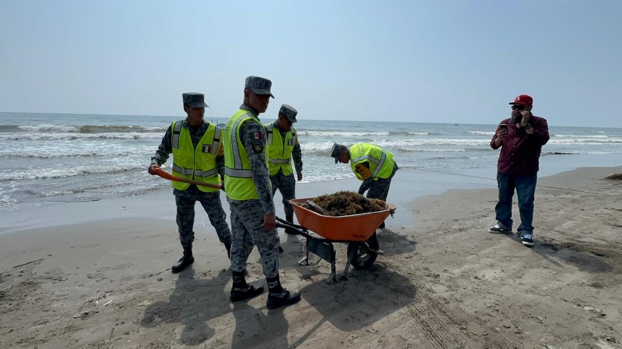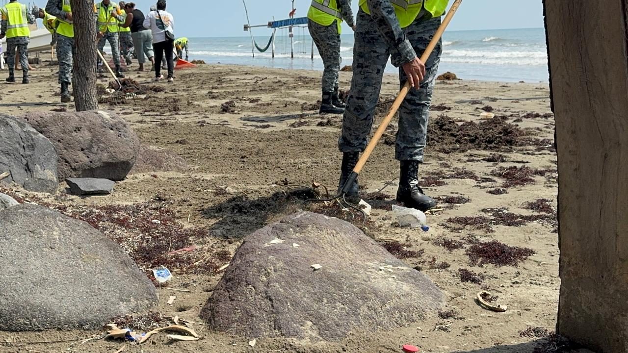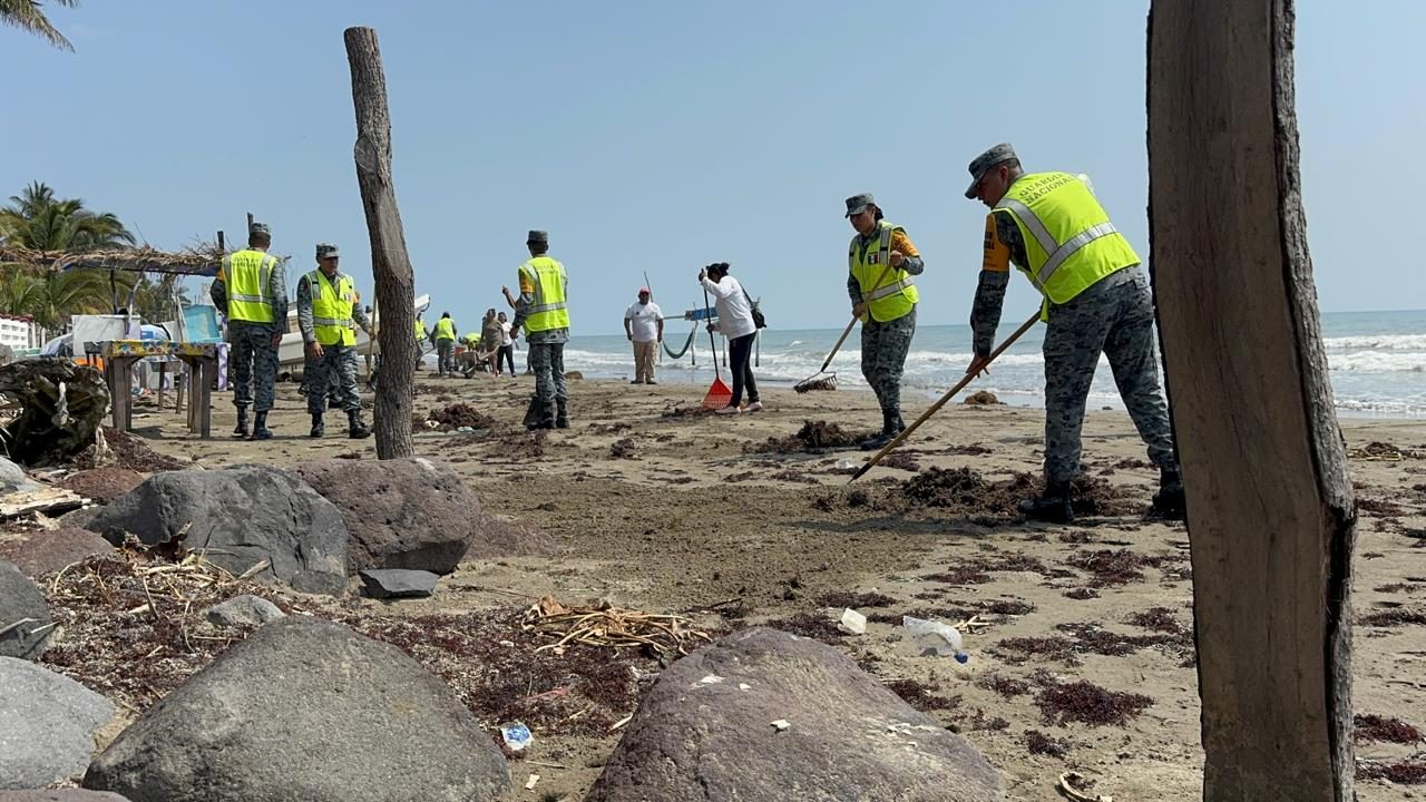 Boca del Río, Ver.- Este viernes, elementos de la Guardia Nacional llevaron a cabo jornadas de limpieza de playas en la comunidad de Mata de Uva, al norte del municipio de Alvarado.