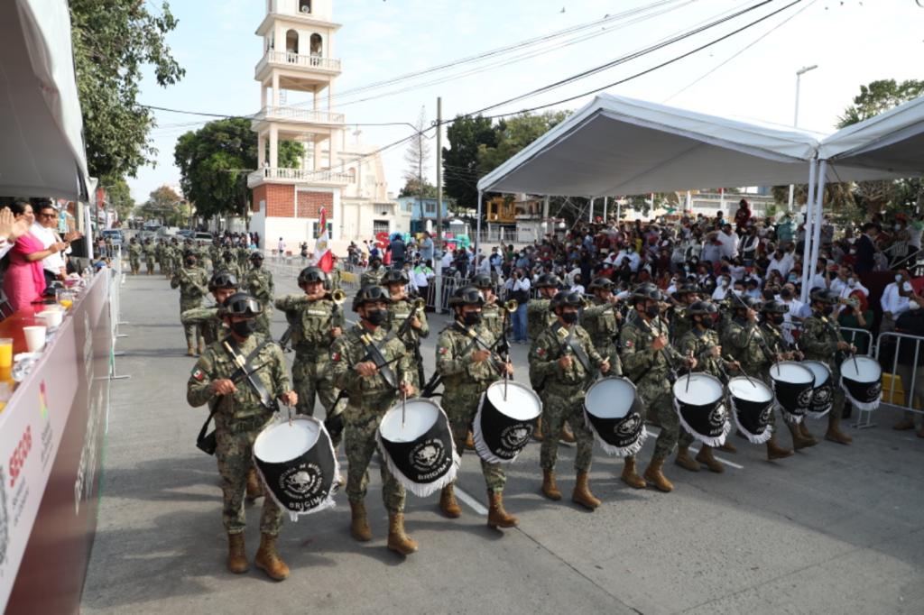 Al término del acto solemne conmemorativo, el Mandatario veracruzano presenció el Desfile Cultural, Cívico y Militar por el 160 Aniversario de los Tratados de la Soledad, acompañado del comandante de la Primera Región Naval Militar, almirante CG DEM, Santiago Jorge Morgado Gómez; del Jefe de Estado Mayor de la 26a. Zona Militar, coronel de Infantería DEM. Juan Alfredo Oropeza Lara y de la presidenta municipal de Soledad de Doblado, Arantxa Lizbeth Zamitiz Sosa.