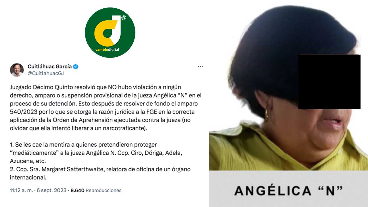 Esto después de resolver de fondo el amparo 540/2023 por lo que se otorga la razón jurídica a la FGE en la correcta aplicación de la Orden de Aprehensión ejecutada contra la jueza (no olvidar que ella intentó liberar a un narcotraficante).