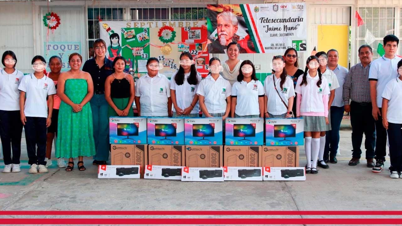 Martínez de la Torre.- El Gobierno de Martínez de la Torre que preside la alcaldesa Alfa Citlalli Álvarez Vázquez refrendó su compromiso con la educación de las y los jóvenes de la Telesecundaria “Jaime Nunó” de la Colonia Del Valle, a la cual entregaron equipo de cómputo para sumar a la formación de su comunidad educativa.