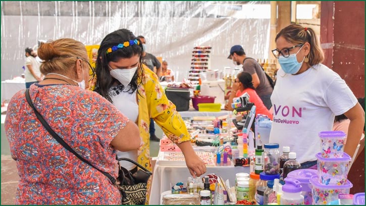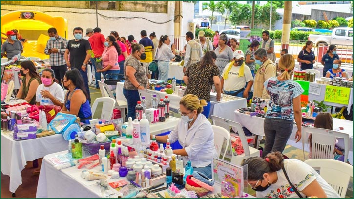 Más de 100 microempresarios se concentraron en la cancha del deportivo “Margarita Maza de Juárez”, dónde expusieron sus productos para ofrecerlos a la ciudadanía.