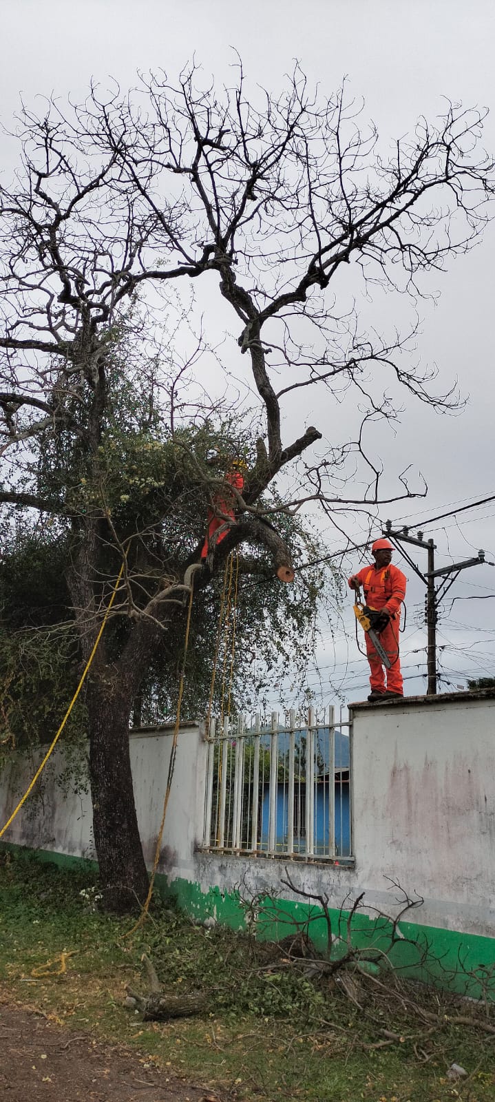 Por esto, se realizó el derribo de un árbol en la Unidad Deportiva “El Rodeo” que representaba un peligro para deportistas y la población en general. Un trabajo que se hizo coordinado y en equipo.