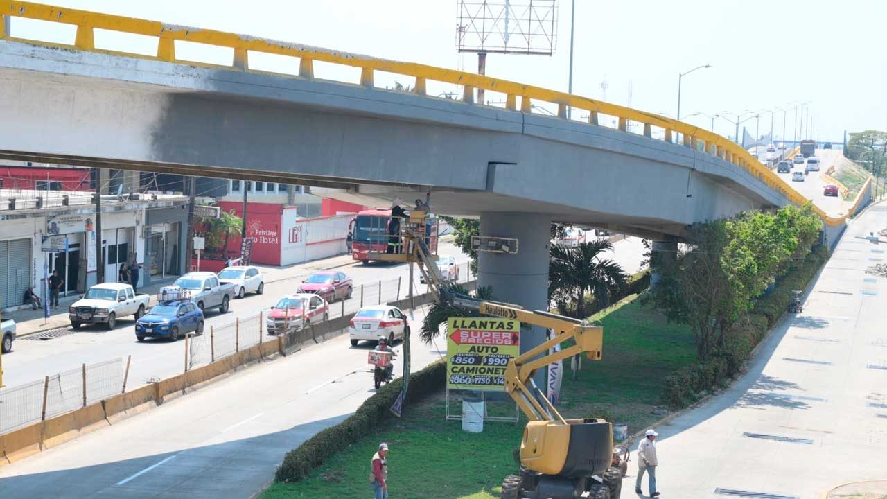 Personal del Ayuntamiento también trabaja en el Distribuidor Vial de la Carretera Transístmica, uno de los principales accesos a la ciudad, donde se ejecutan acciones de mejoramiento urbano y seguridad vial. Las acciones contemplan pintura general para reforzar la imagen visual, así como la reparación de rejillas para garantizar un tránsito más seguro y evitar daños a vehículos.