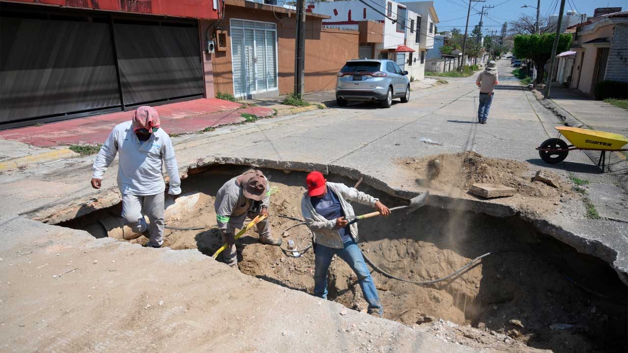 En la colonia Petrolera, cuadrillas municipales atienden afectaciones en la red de drenaje sanitario que han provocado socavones en calles como Chihuahua y Veracruz. Las labores incluyen la reparación de la infraestructura dañada para prevenir riesgos a peatones y automovilistas.