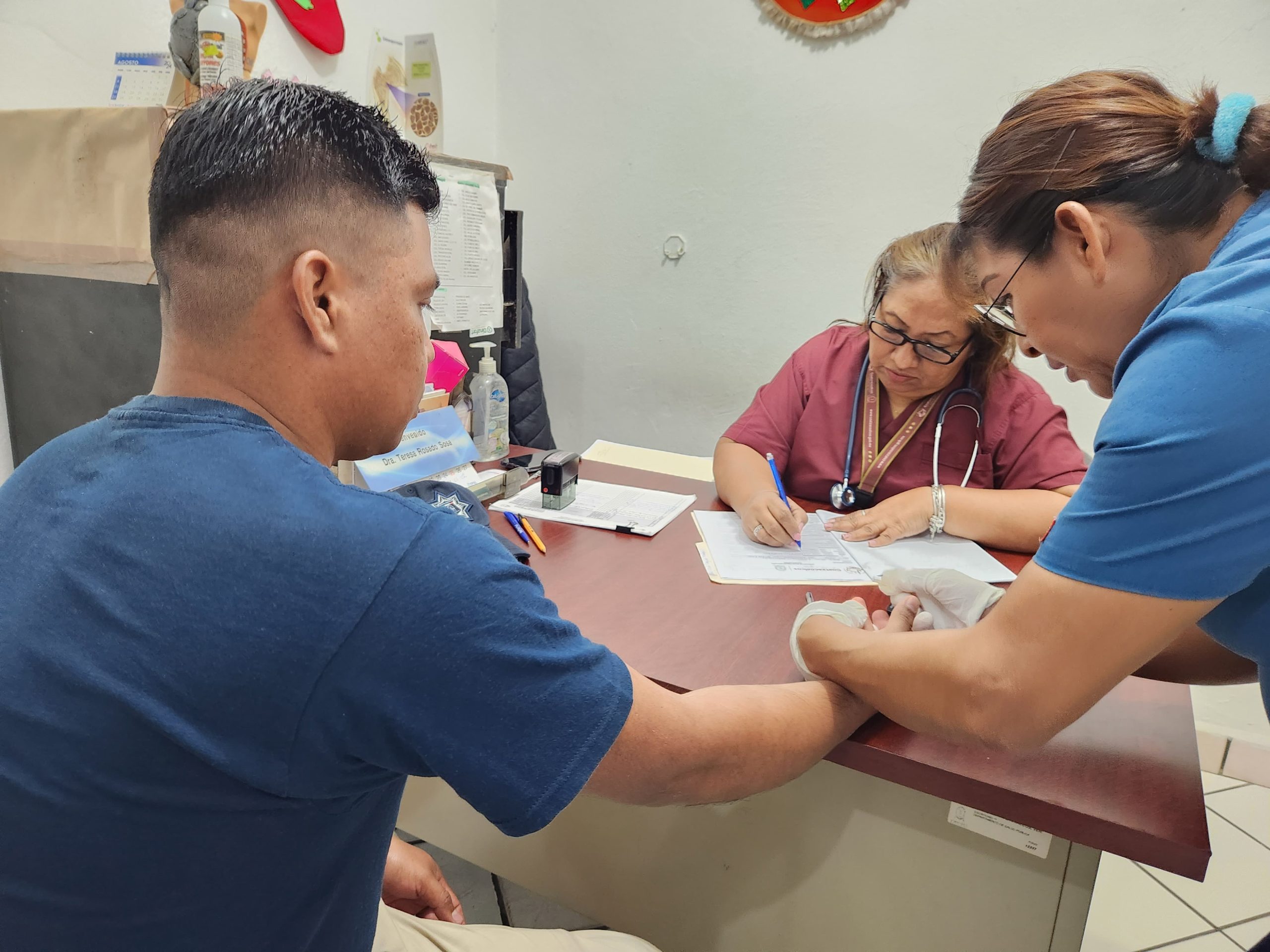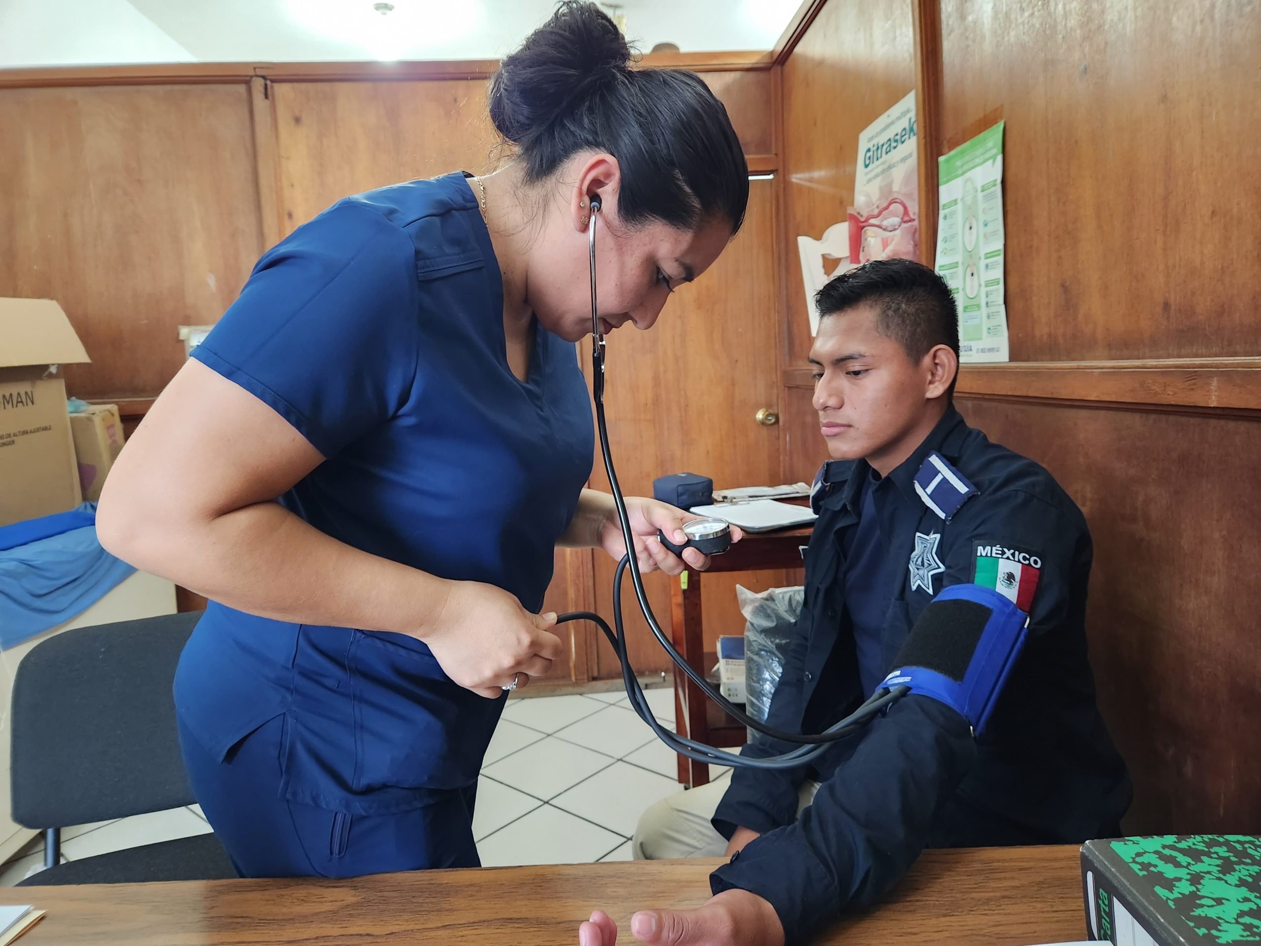 Durante esta jornada se les realiza exámenes médicos generales, toma de signos vitales, revisión del estado físico y evaluaciones clínicas complementarias, con el propósito de garantizar que cada elemento policial cuente con las condiciones adecuadas para desempeñar sus funciones operativas.