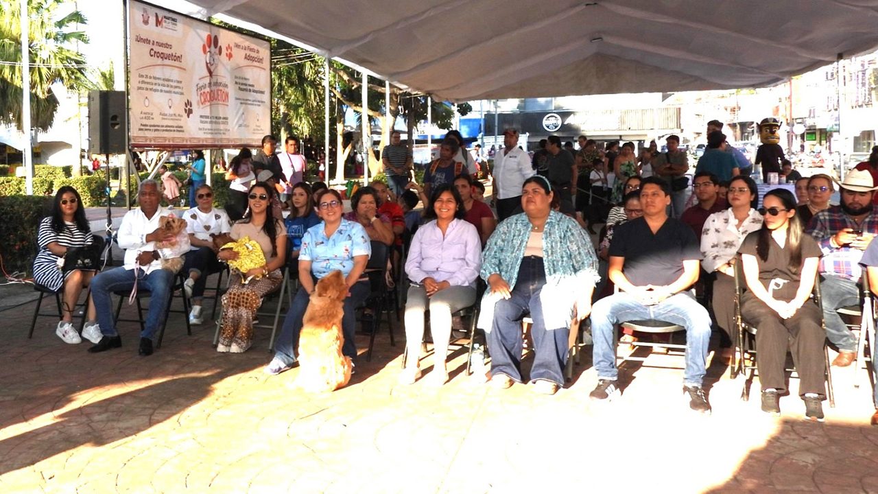Martínez de la Torre, Ver.- Durante el evento de “Croquetón y Feria de Adopciones” celebrado en el parque central José María Mata, con la presencia del alcalde de Martínez de la Torre, Modesto Velázquez Toral, la presidenta del DIF Municipal Karla Tamara Velázquez Mora, la síndica Elizabeth Medellín León y los regidores Xóchitl Álvarez Vázquez y Mario Giuseppe Olivares Belli, fue anunciada la creación del primer centro de Bienestar Animal de Martínez de la Torre.