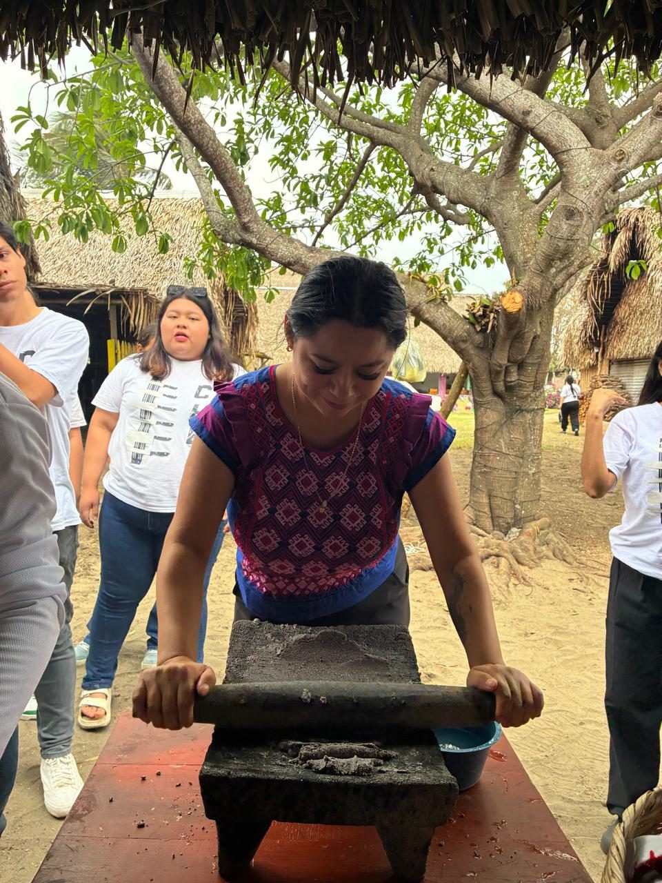 Durante la jornada, las y los estudiantes también tuvieron la oportunidad de conocer y utilizar herramientas prehispánicas como el metate, además de aprender sobre la preparación en cocina de humo, una técnica ancestral que forma parte de la riqueza cultural de nuestra región.