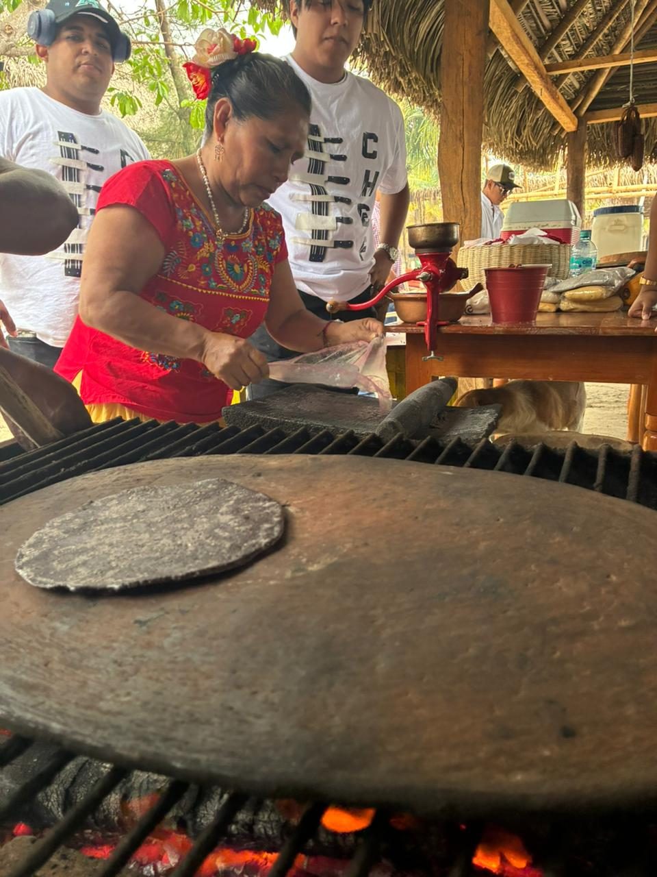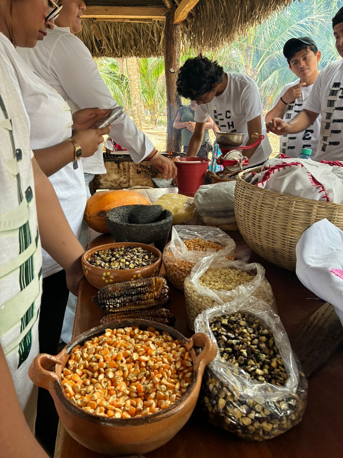 En este contexto, y como parte de las actividades que iniciaron en Barrillas y continuaron en Jicacal, cocineras comunitarias compartieron su conocimiento con estudiantes de gastronomía de la IEMOL, quienes aprendieron sobre las técnicas tradicionales de nixtamalización, así como los distintos tipos de maíz y masa que forman parte fundamental de la gastronomía mexicana.