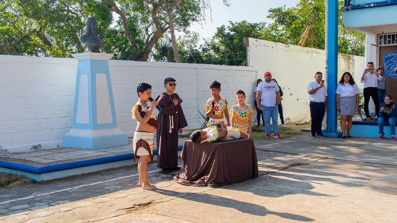 Tlacotalpan, Ver.- El Ayuntamiento de Tlacotalpan, que preside el Ing. Christian Romero Pérez, participó en el acto cívico organizado por la Escuela Primaria Emperador Cuauhtémoc con motivo del 501 aniversario luctuoso de Cuauhtémoc.