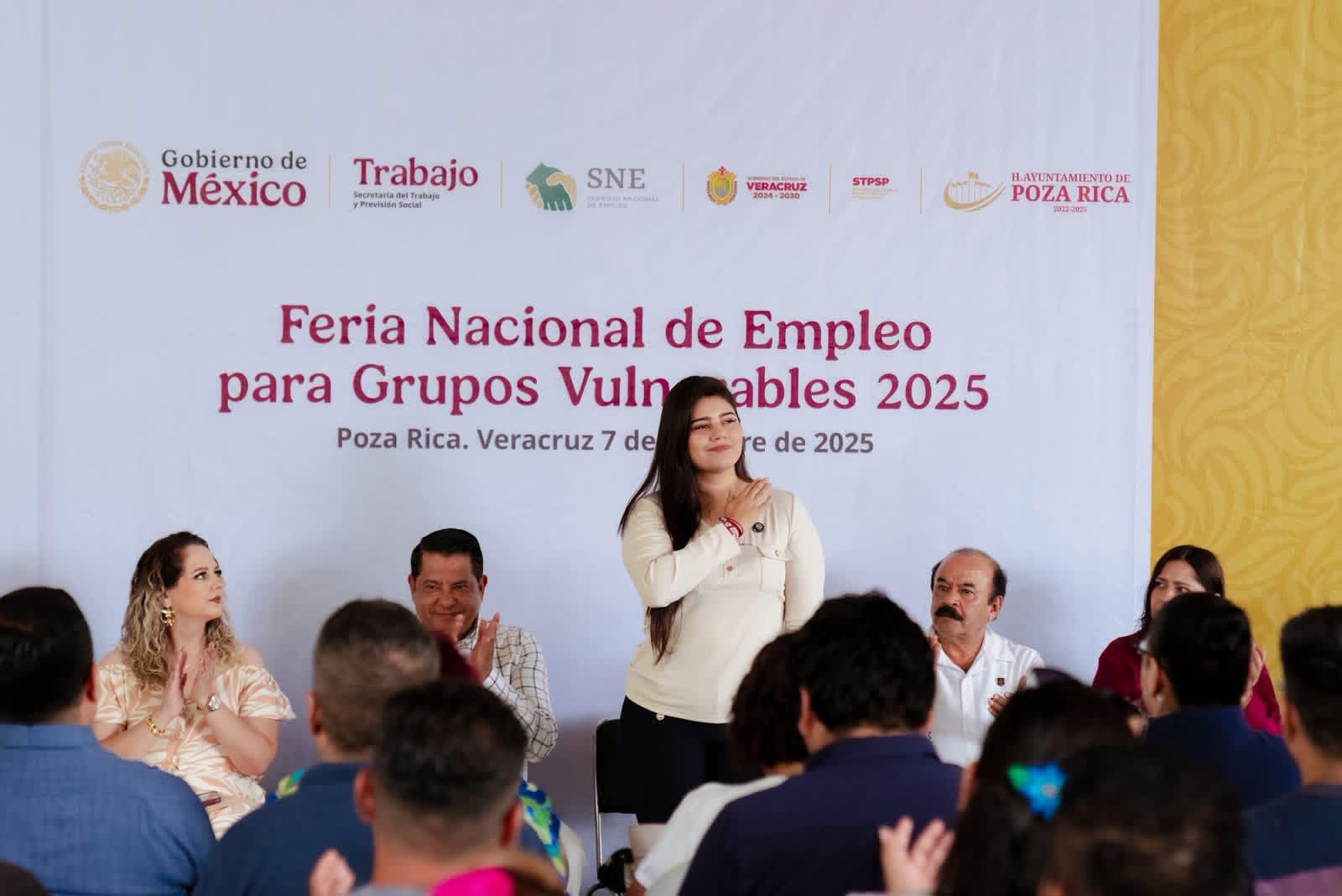 Poza Rica, Ver.– El Gobierno Municipal Electo de Poza Rica, encabezado por la alcaldesa electa Adanely Rodríguez, fortaleció la coordinación con el Gobierno del Estado de Veracruz que encabeza la Gobernadora de Veracruz, Rocío Nahle a través de la Secretaría del Trabajo y Previsión Social, durante la Feria Nacional del Empleo para Grupos Vulnerables 2025, realizada este martes en esta ciudad.