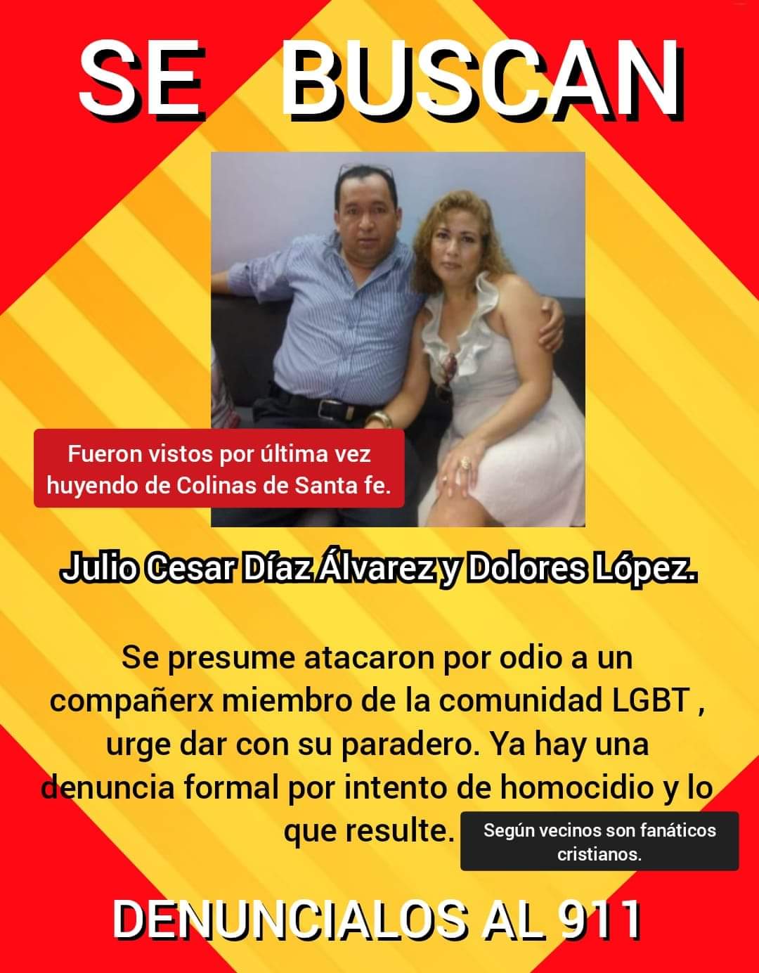 El representante de la organización LGBTI, remarcó que de acuerdo a los vecinos de Colinas de Santa Fe, Julio César “N” es una persona agresiva