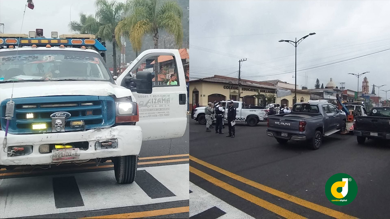 Los hechos se dieron en el cruce de avenida Poniente 7 o calle Real, y calle Sur 12, cuando la grúa marca Ford F250 de la empresa "Grúas y Asistencia "Aizama", y la patrulla de la Guardia Nacional, marcada con el número 30975, se impactaron y los elementos cayeron, algunos dentro de la unidad y otros proyectados al pavimento.